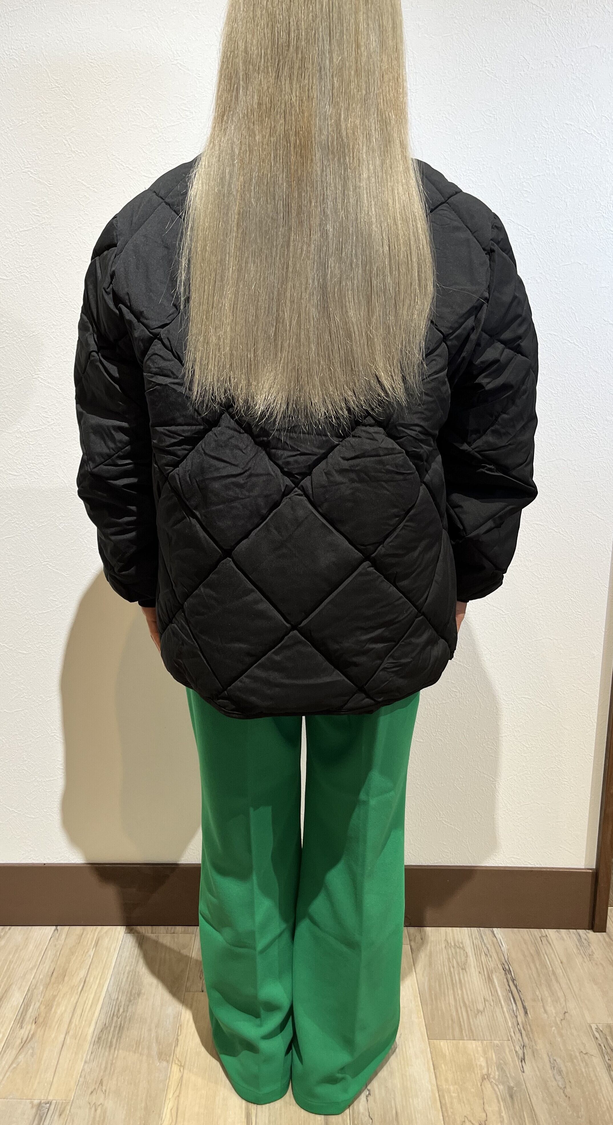 アウター/ノーカラー/キルティング/ジャケット/カラー/冬/中綿/パフスリーブ/無地/シンプル/韓国