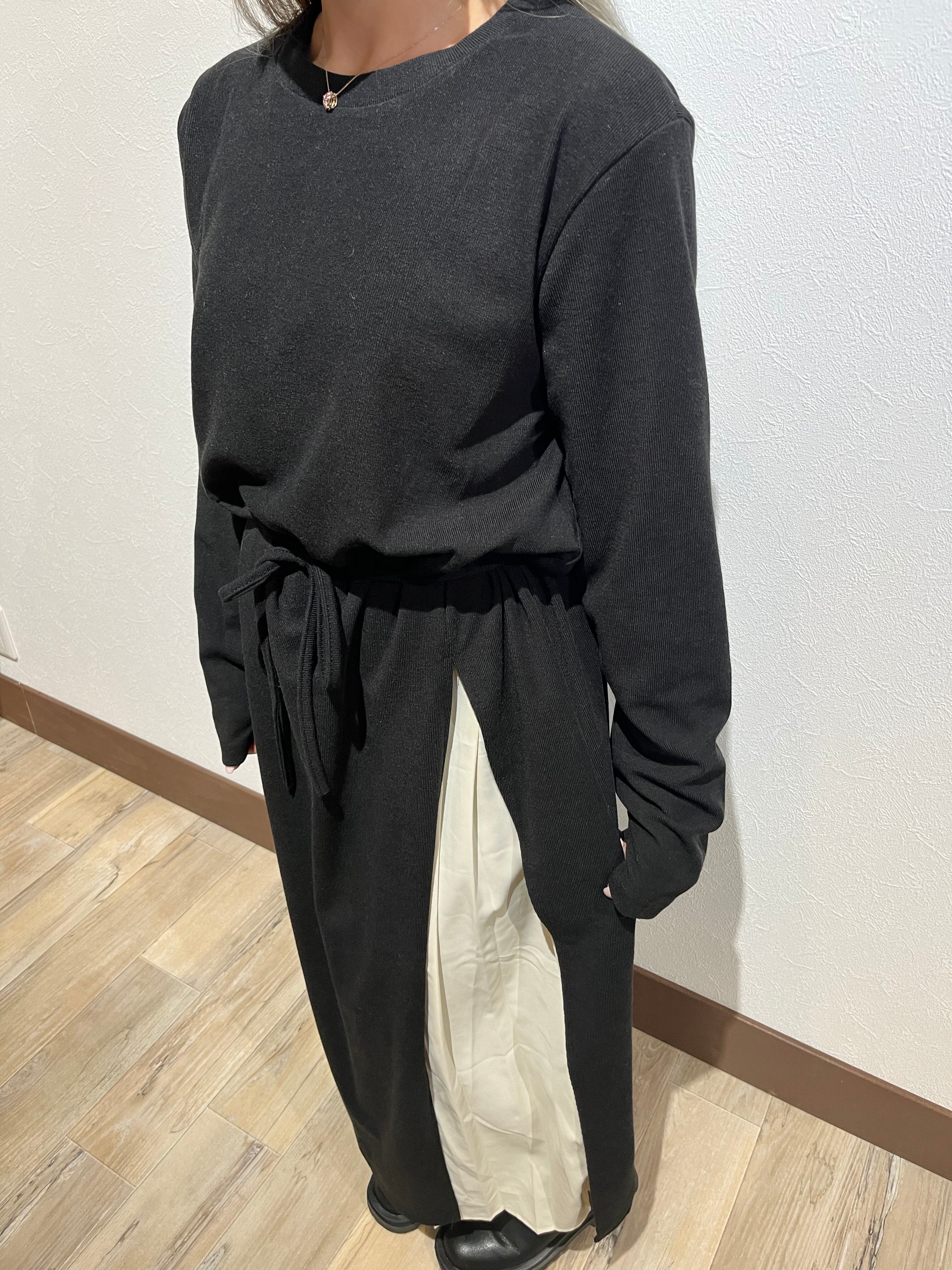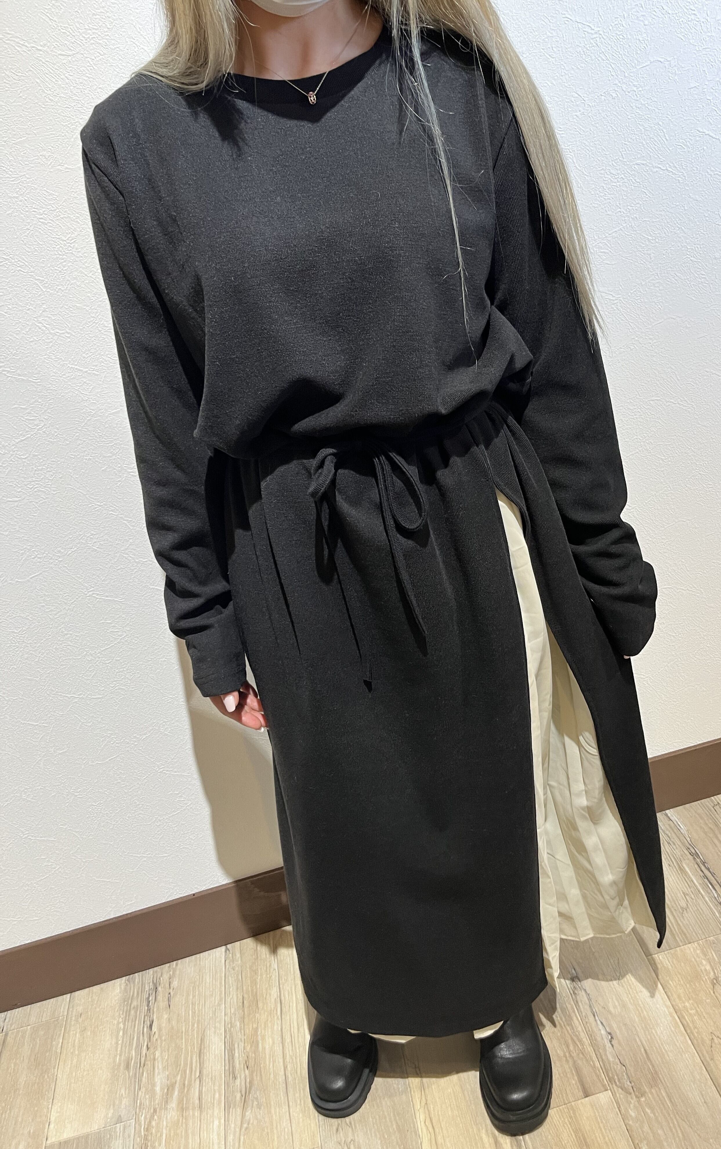 ワンピース/スリッド/プリーツ/紐/ゆったり/秋冬/ロングワンピース/大人/韓国