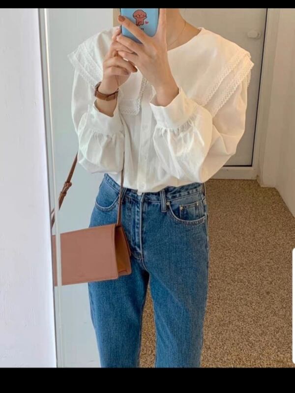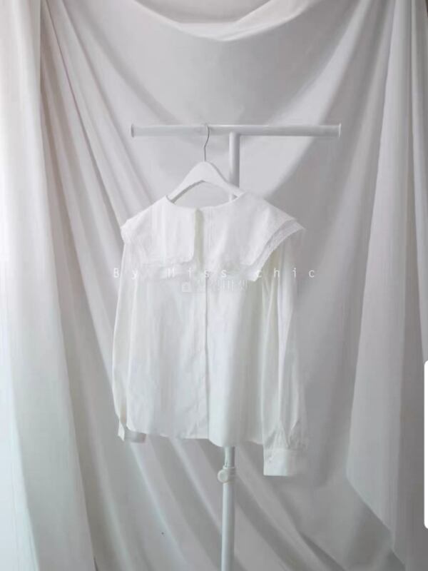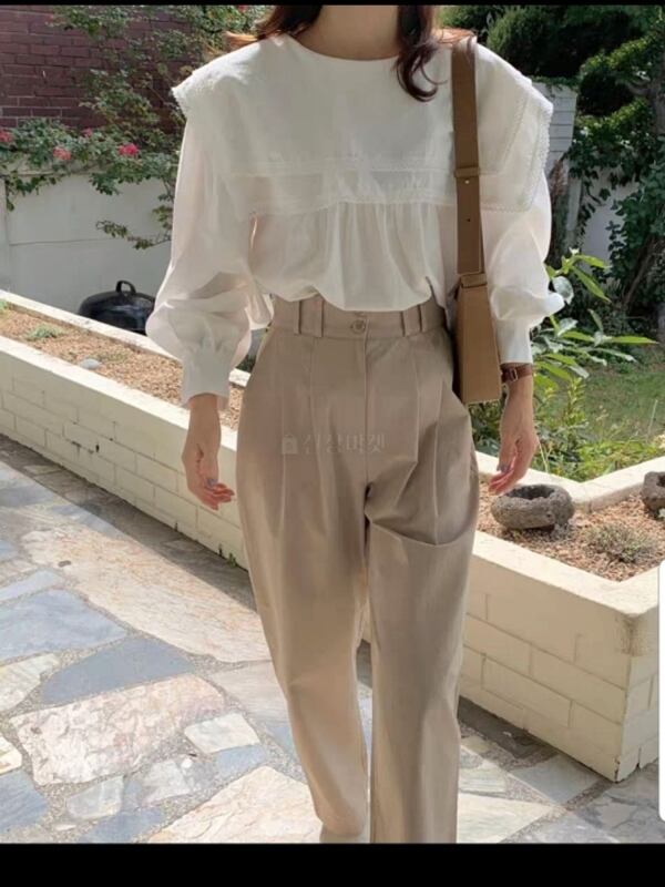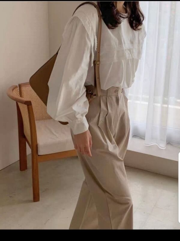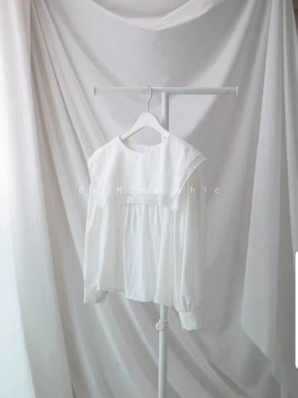 トップス/ブラウス/襟/レース/2段/フリル/ラウンドネック/ツーウェイ/フリルブラウス/韓国