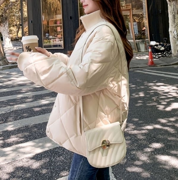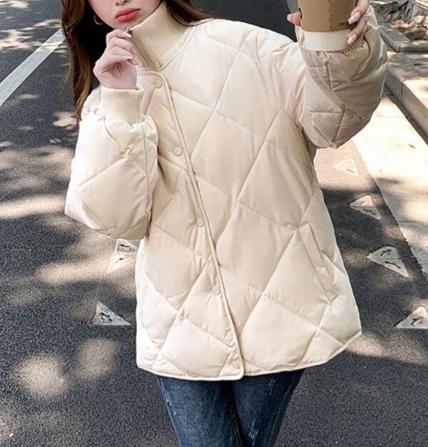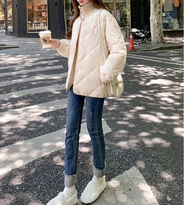 アウター/キルティング/ジャケット/アイボリー/冬/カジュアル/韓国/中綿/襟付き/ポケット