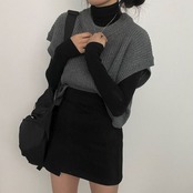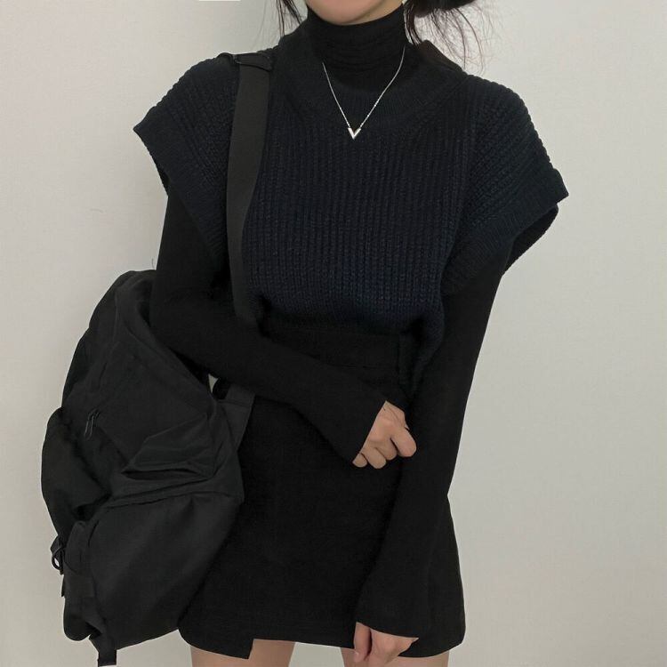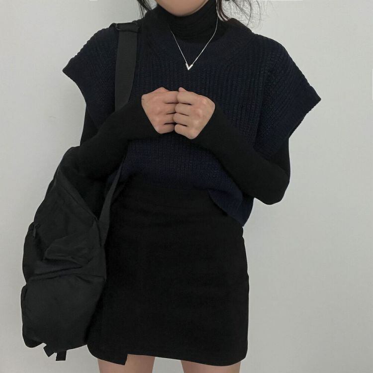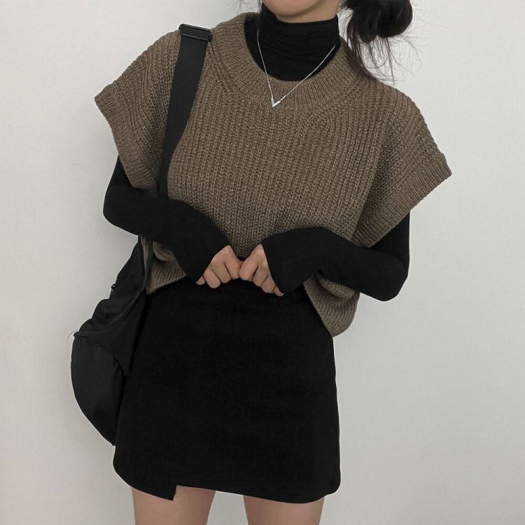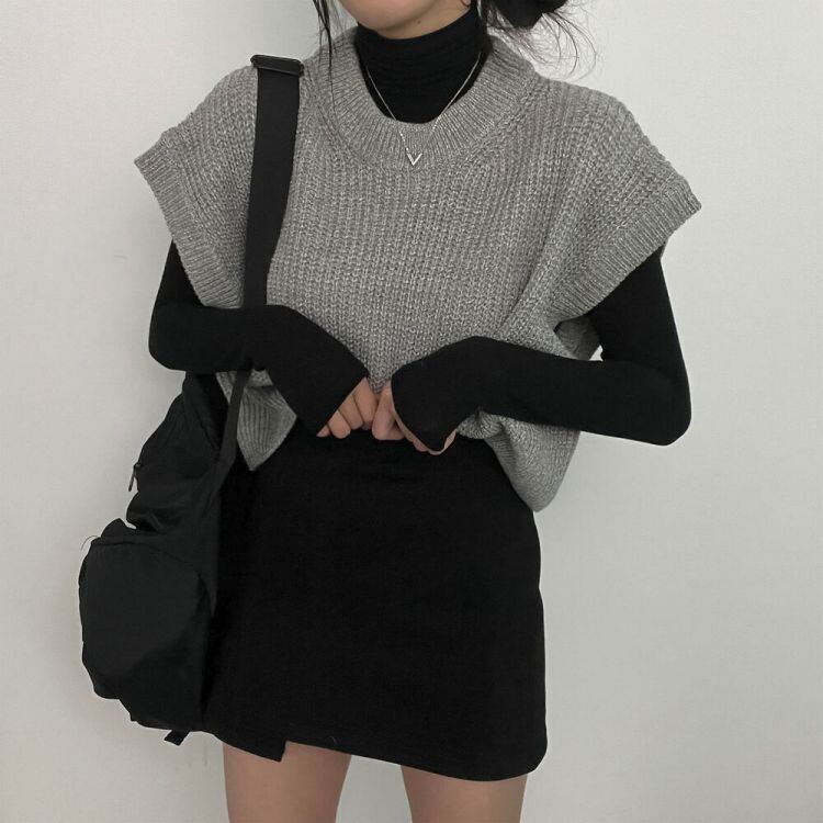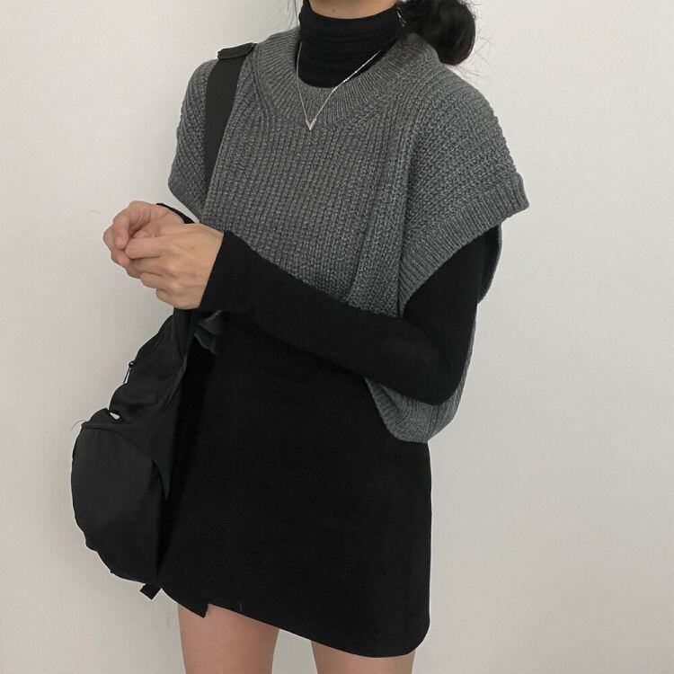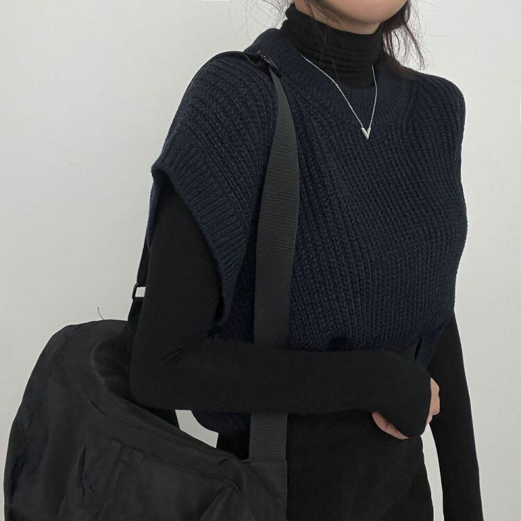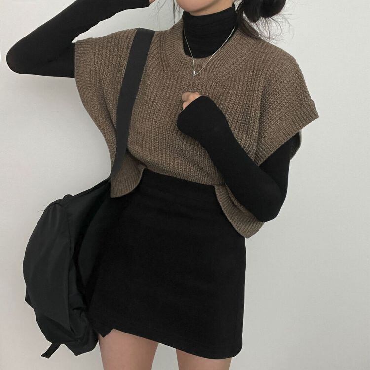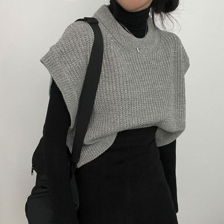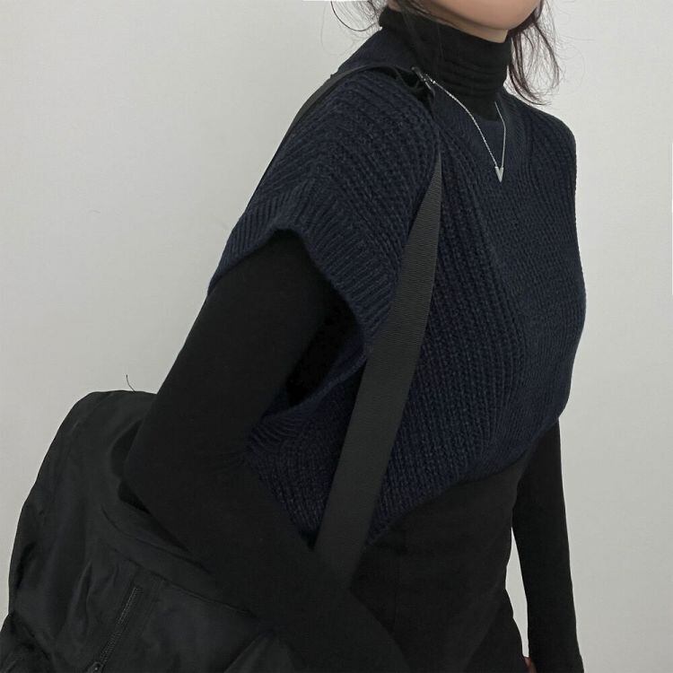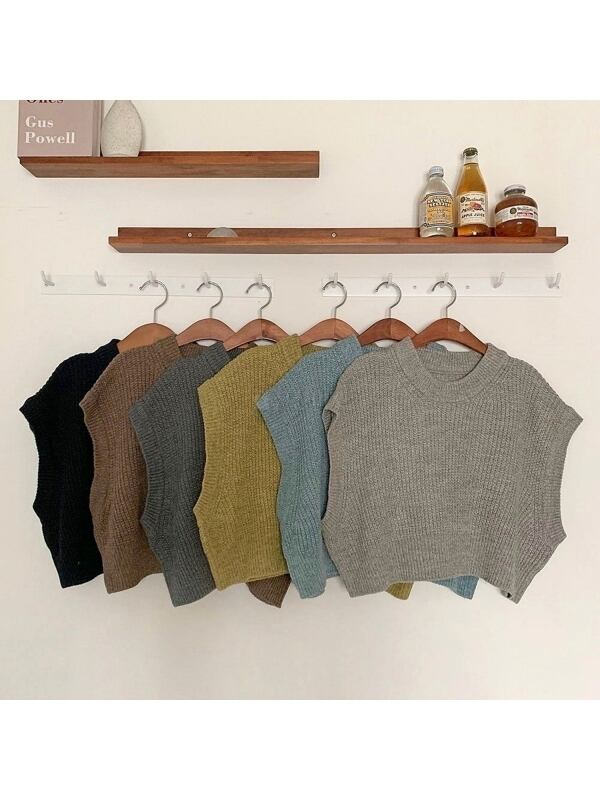 トップス/ニット/ベスト/ショート丈/ラウンドネック/カラー5色/春秋冬/重ね着/着回し/ニットベスト/レディース