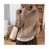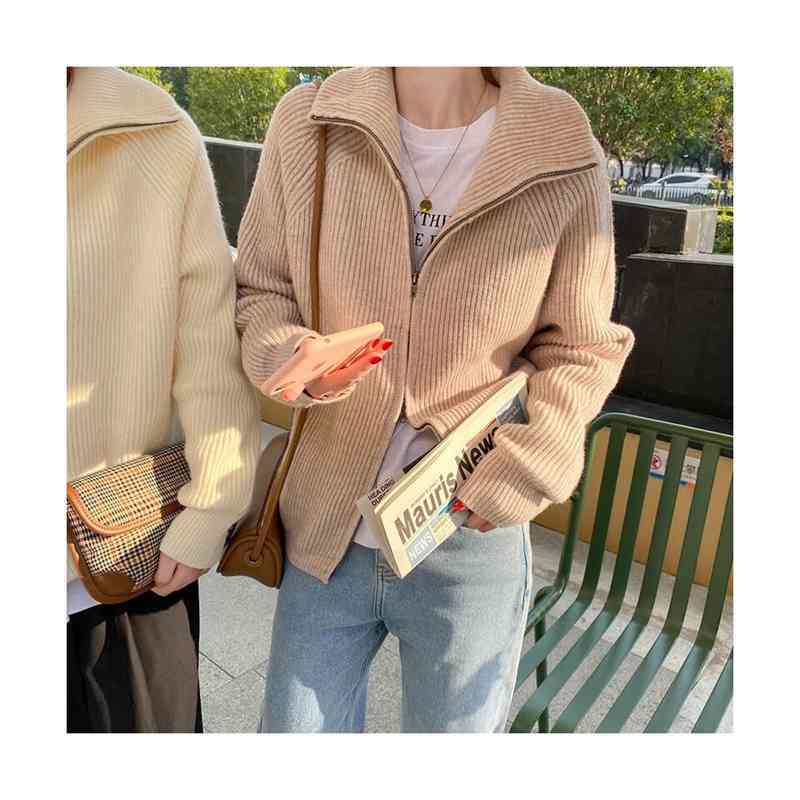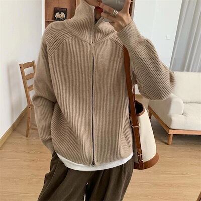 トップス/カーディガン/ハイネック/セーラーカラー/ダブルジップアップ/ニット/レディース/ゆったり/レディース