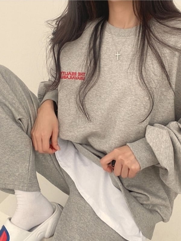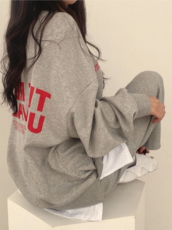 トップス/トレーナー/スウェット/プリントスウェット/秋冬/韓国ファッション/レイヤード風/レタリングスウェット/ユニセックス/レディース/メンズ