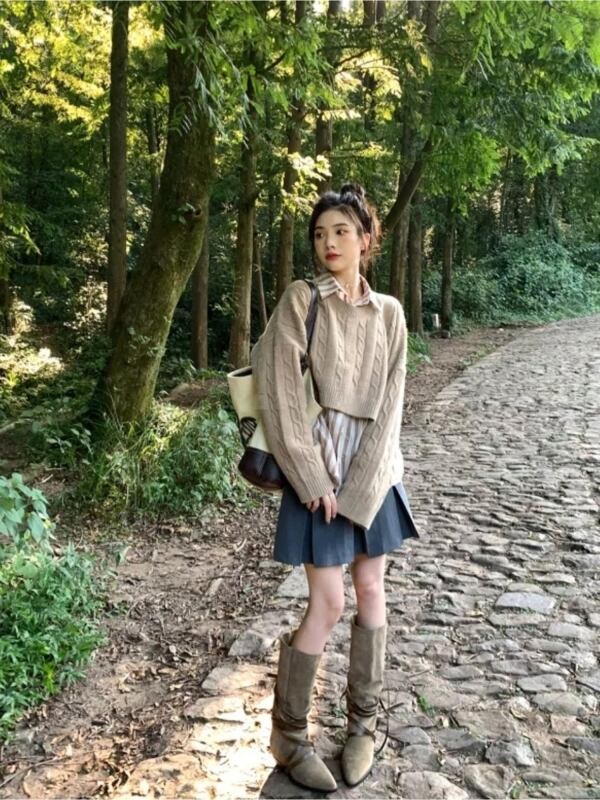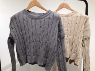 トップス/長袖/ニット/ショート丈/クロップド丈/ケーブル編み/韓国