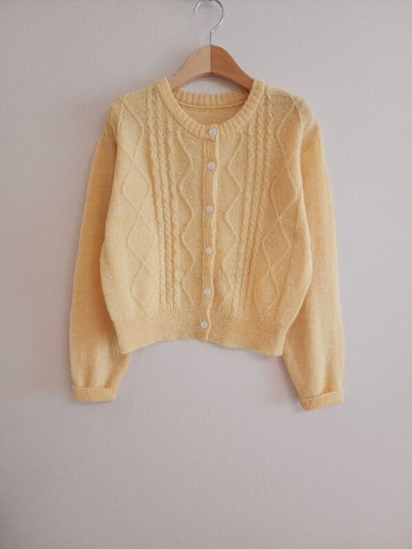 ニットカーディガン/ケーブルクルーネックカーディガン/レディース/クルーネック/ケーブル編み/前開き/秋冬春/韓国