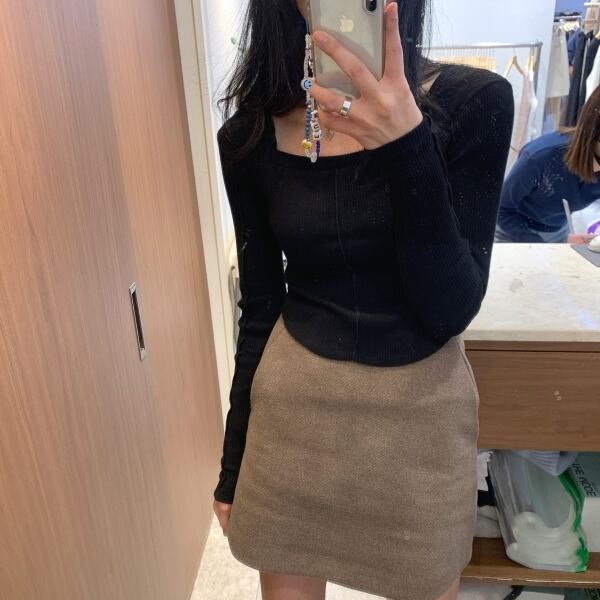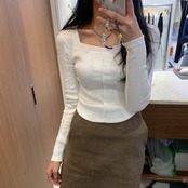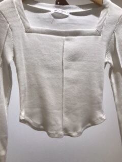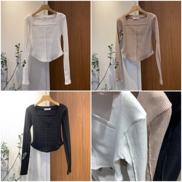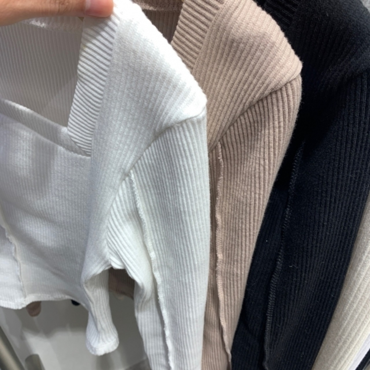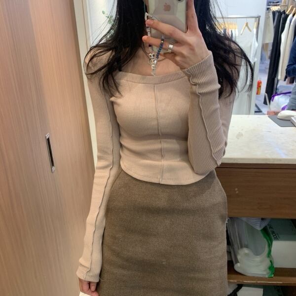 トップス/長袖/スクエアネック/サイドライン/リブ/ショート丈/プルオーバー/春秋冬/レディース/韓国風