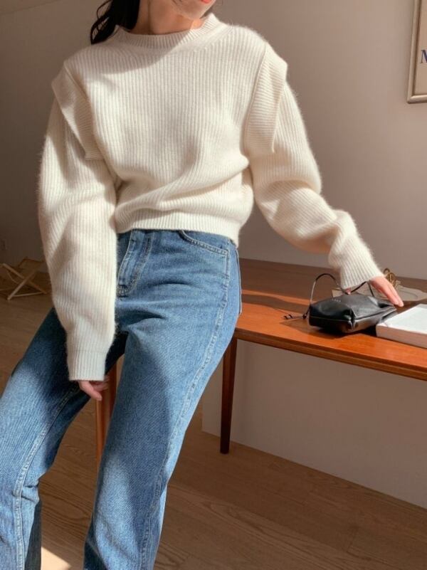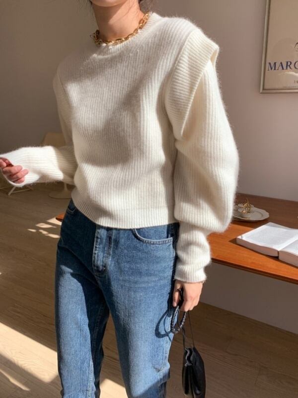 トップス/長袖/ニット/重ね着風/セーター/秋冬/韓国/ふわふわ/クルーネック/レディース