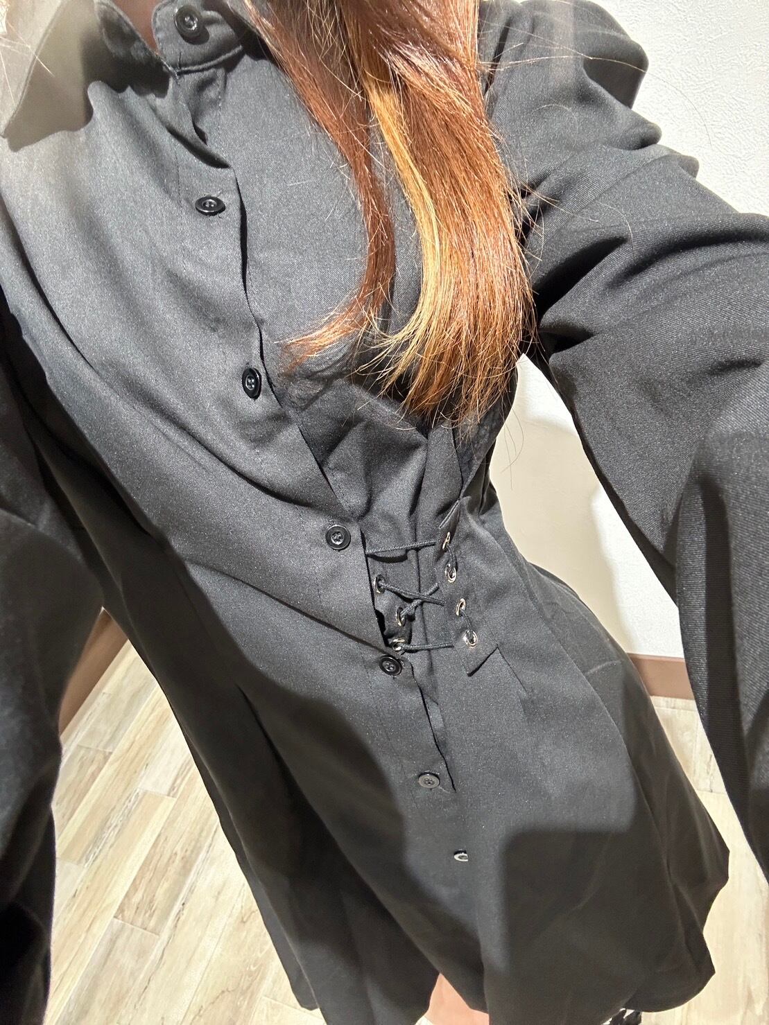 ワンピース/シャツワンピ/ブラック/コルセット風/襟付き/膝上/レディース/春秋冬/韓国