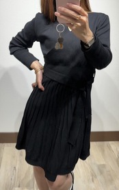 ワンピース/ニット/プリーツスカート/ニットワンピース/ショート丈/Vネック/春秋冬/カシュクール/韓国/レディース