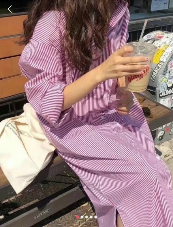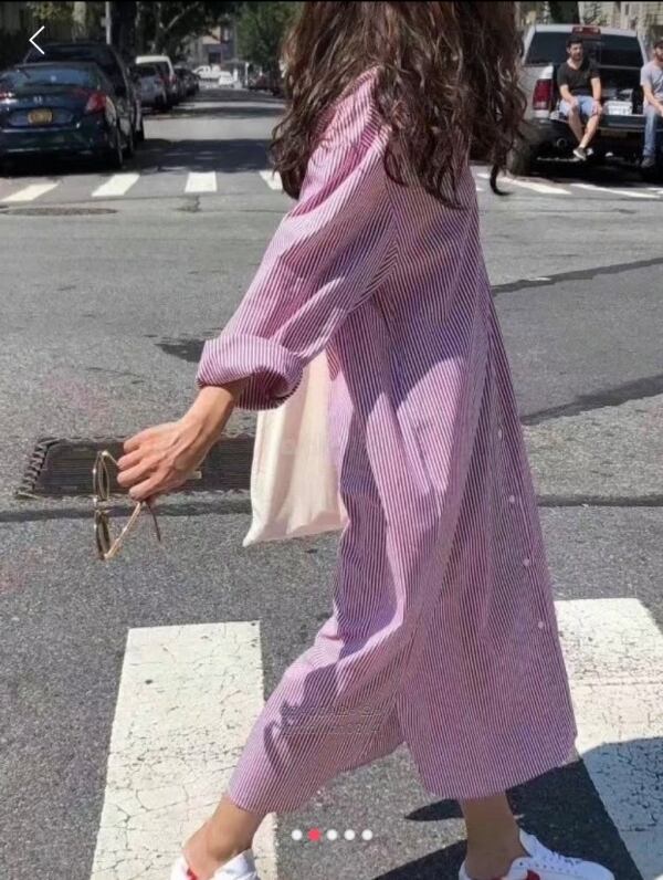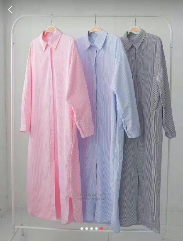 レディース/ワンピース/シャツワンピース/ロングワンピース/シャツ/ストライプ柄/春夏/韓国