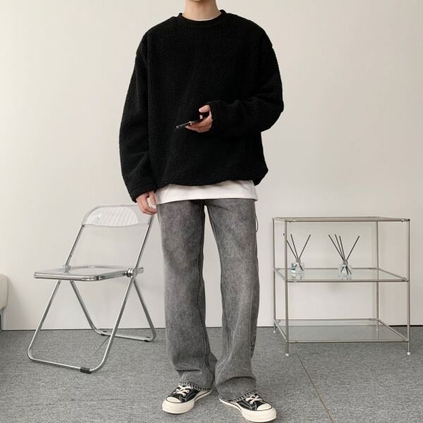 メンズ/トップス/プルオーバー/スウェット/プードル/もこもこ/丸首/秋冬/韓国