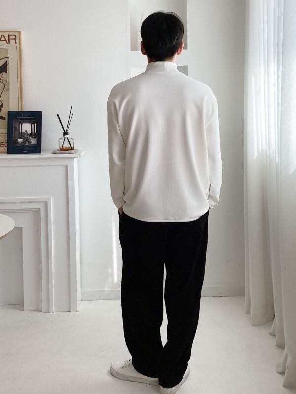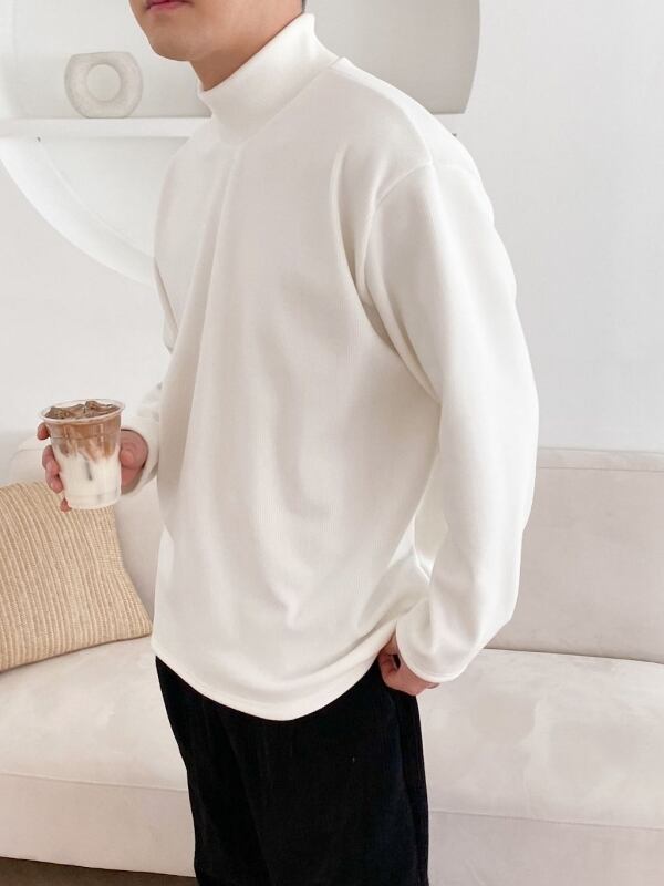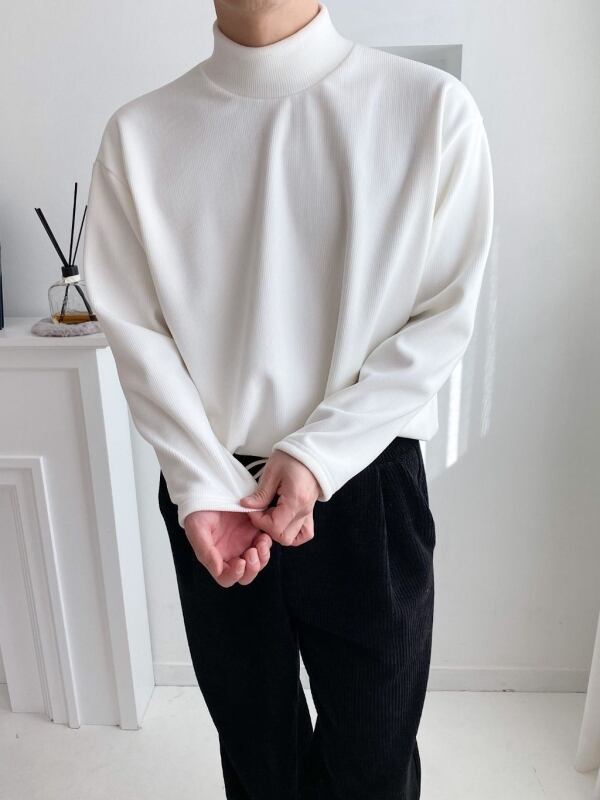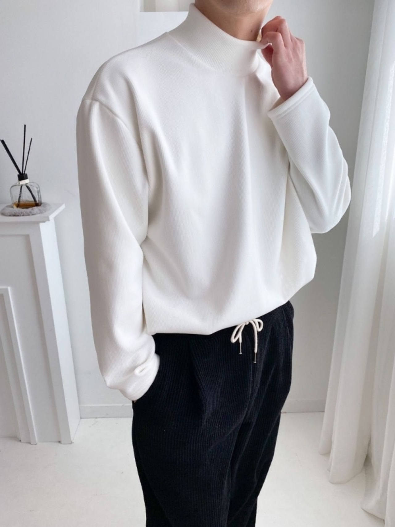 メンズ/トップス/長袖/裏起毛/ハイネック/シンプル/コーデュロイ/春冬/韓国
