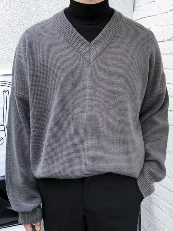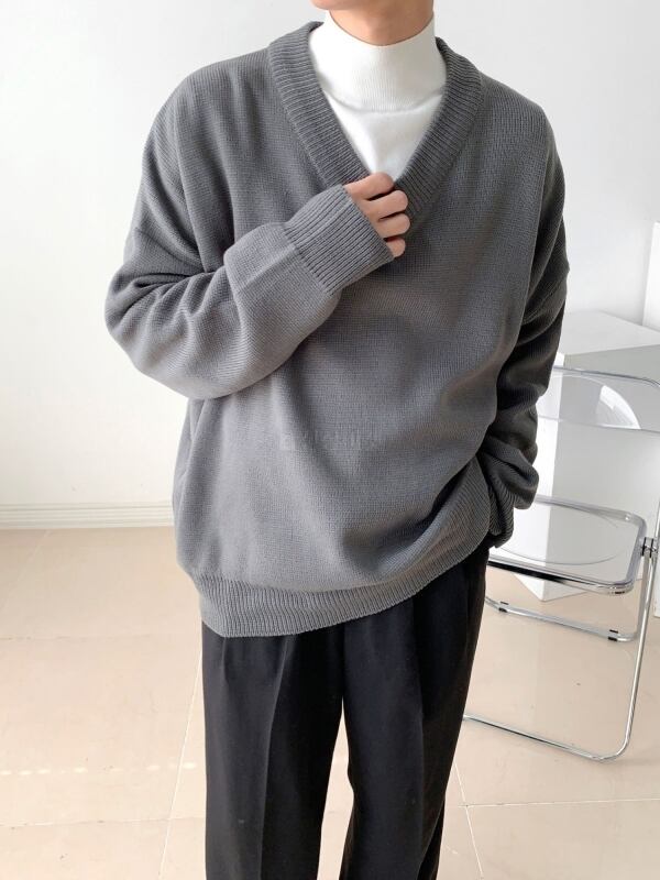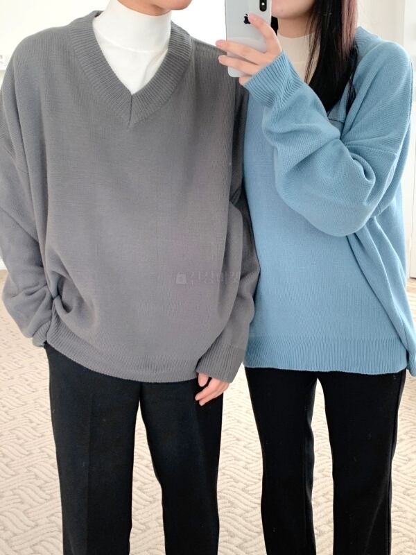 メンズ/ユニセックス/トップス/ニット/セーター/カジュアルニット/シンプルニット/Vネック/シンプル/ゆったり/カジュアル/韓国