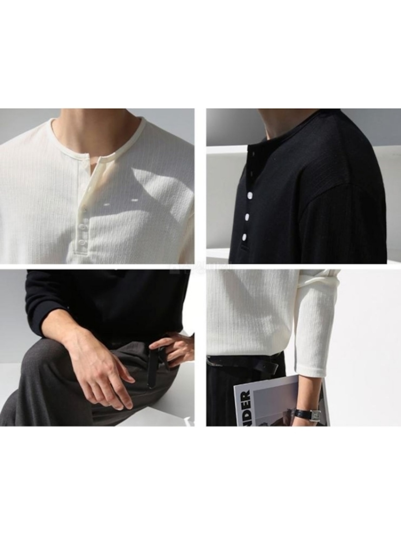メンズ/トップス/長袖/ロンT/ヘンリーネック/カジュアル/シンプル/韓国