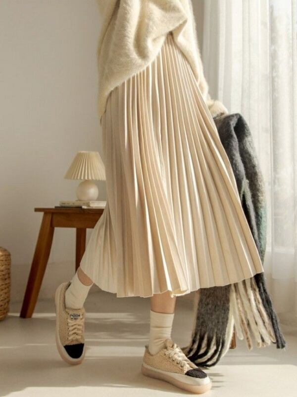 レディース/スカート/プリーツスカート/プリーツ/ロングスカート/シンプル/ウエストゴム/着回し/韓国