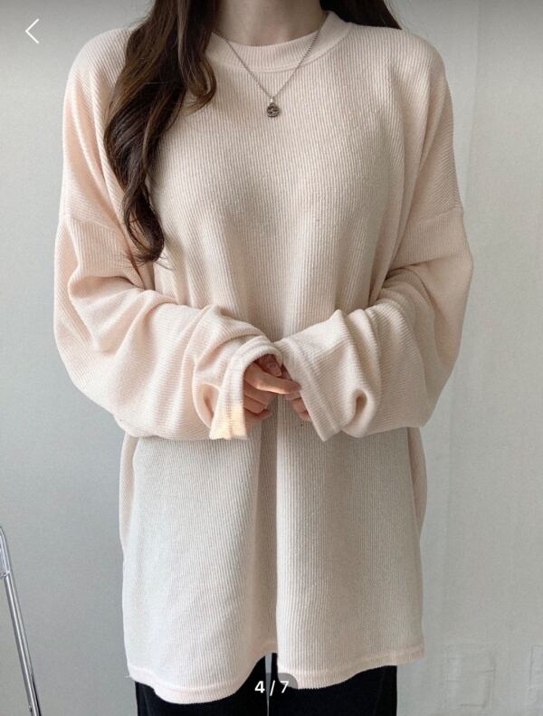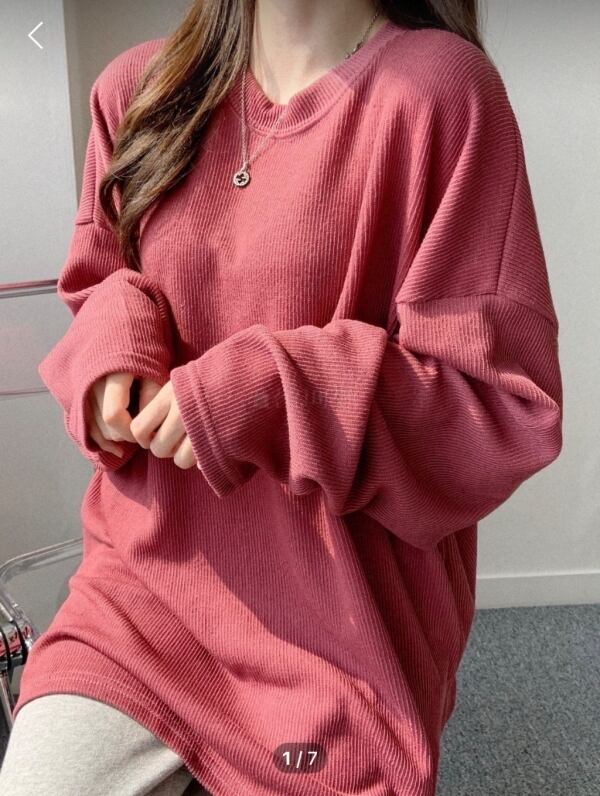 レディース/トップス/長袖/春服/ゆったり/ふんわり/オーバーサイズ/クルーネック/丸首/韓国
