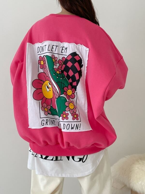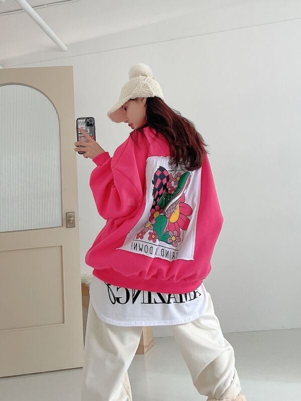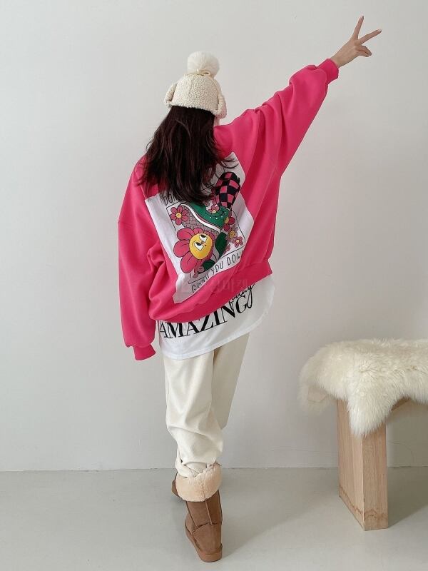 レディース/トレーナー/スウェット/長袖/裏起毛/バックプリント/カラフル/韓国