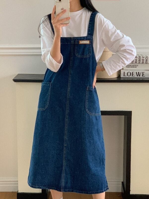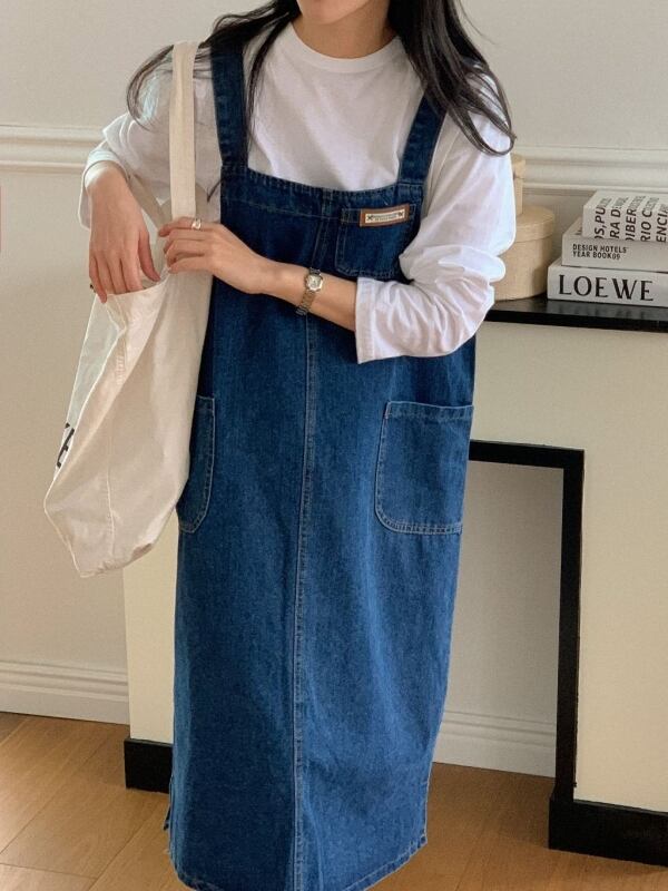 レディース/ワンピース/デニムワンピース/デニム/サロペットスカート/カジュアル/春服/韓国