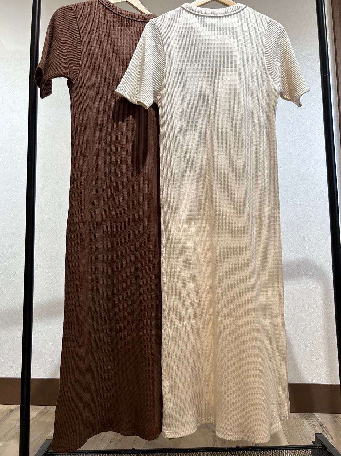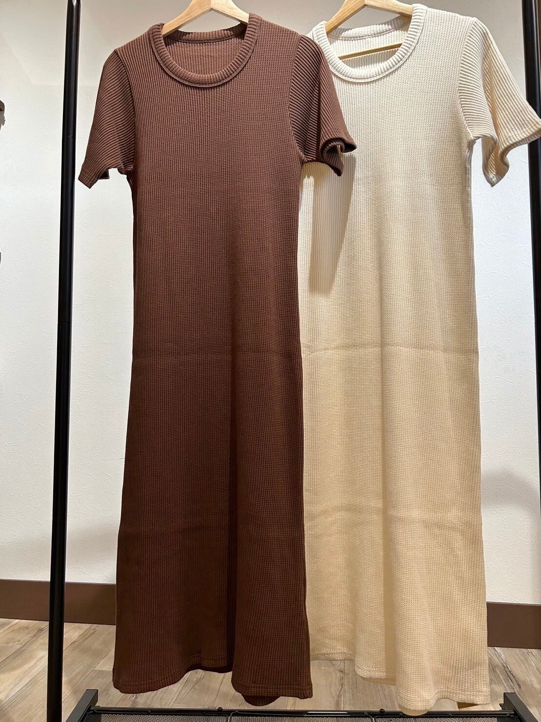 レディース/ワンピース/半袖/パイル生地/シンプル/ロングワンピース/韓国