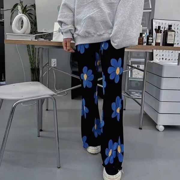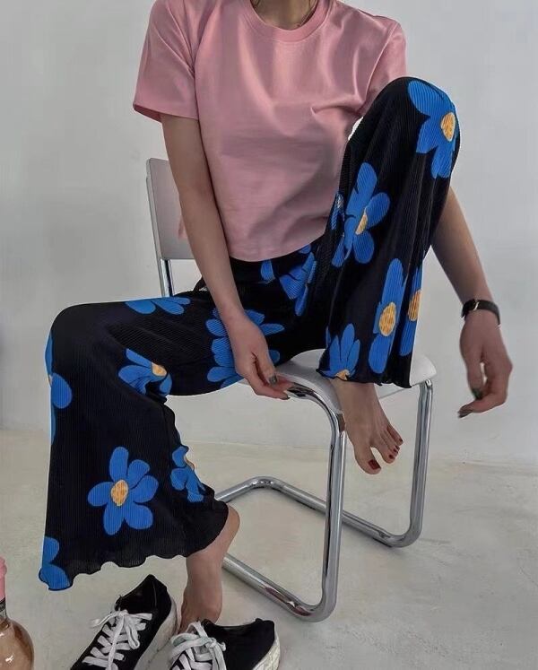 レディース/パンツ/ワイドパンツ/フレアパンツ/プリーツ/プリントパンツ/花柄/春夏/韓国