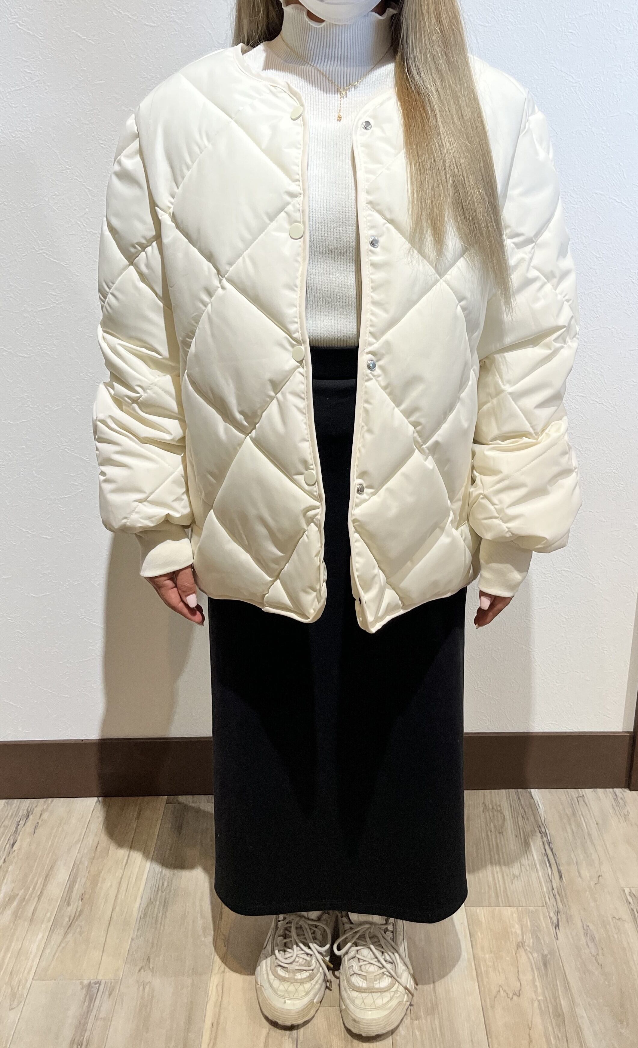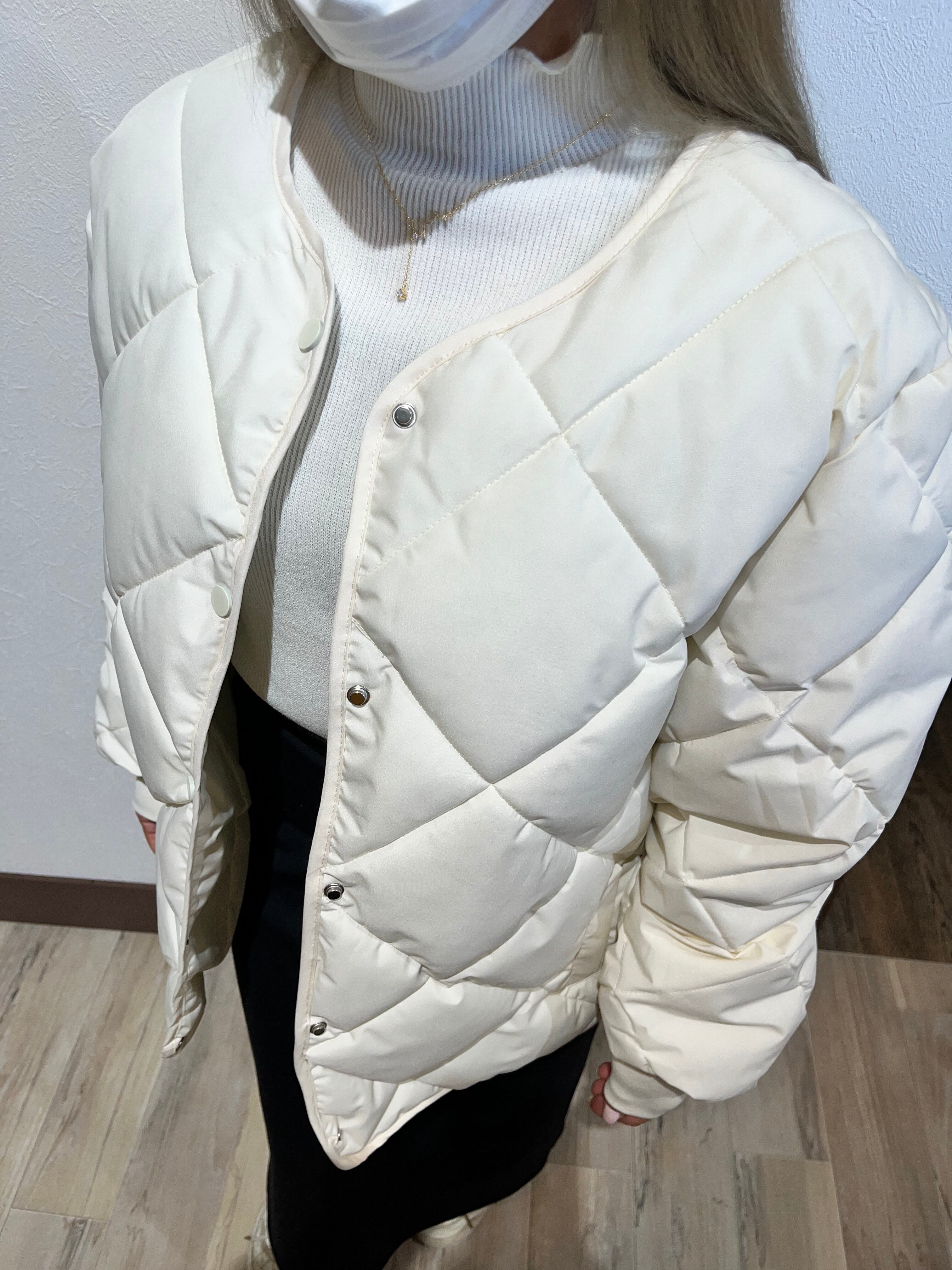 50%OFF!/アウター/ノーカラー/キルティング/ジャケット/カラー/冬/中綿/パフスリーブ/無地/シンプル/韓国