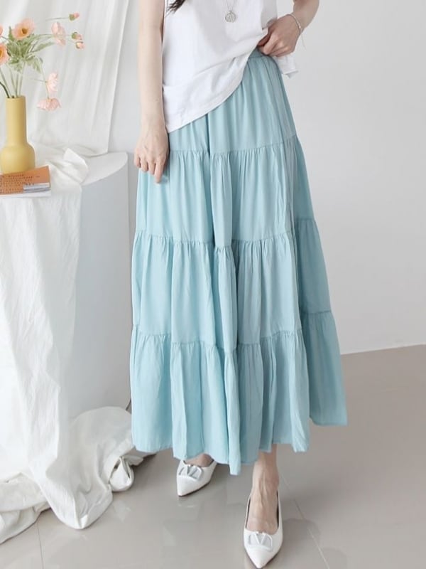 レディース/スカート/フレアスカート/ロングスカート/ティアードスカート/春夏/韓国