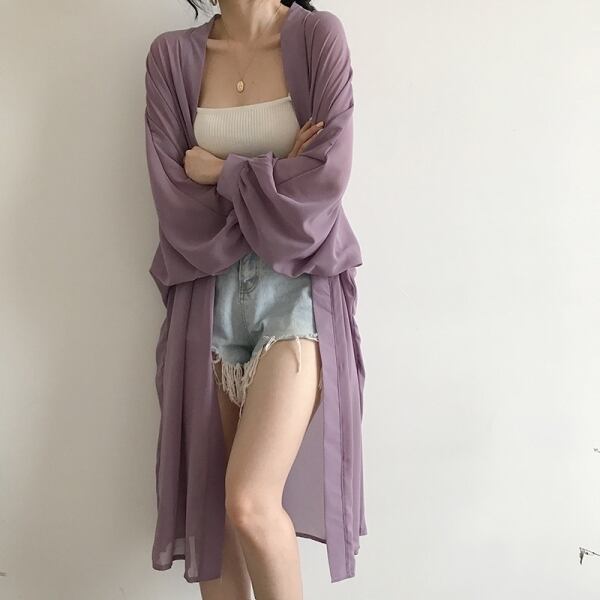 レディース/カーディガン/長袖/ガウン/ロングカーディガン/シアーシャツ/透け感/韓国