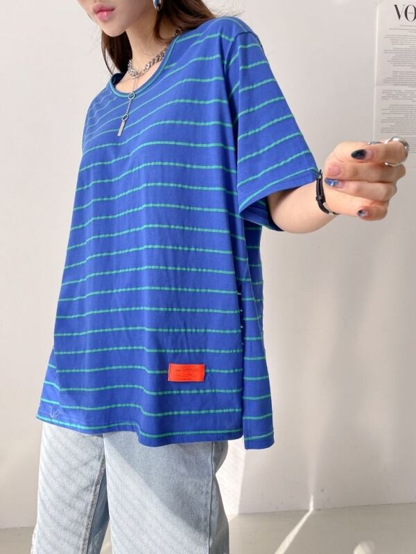 レディース/ユニセックス/トップス/半袖/Tシャツ/ボーダー柄/オーバーTシャツ/カジュアル/韓国