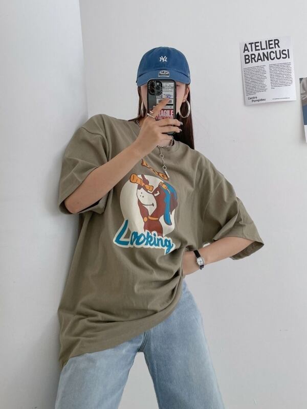 レディース/ユニセックス/トップス/半袖/Tシャツ/プリントTシャツ/カジュアル/オーバーTシャツ/韓国