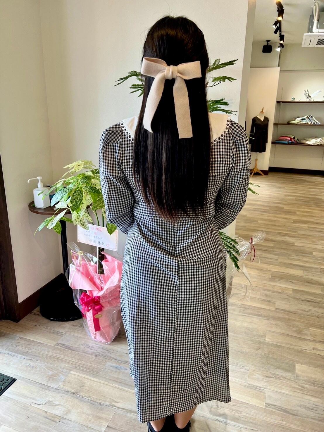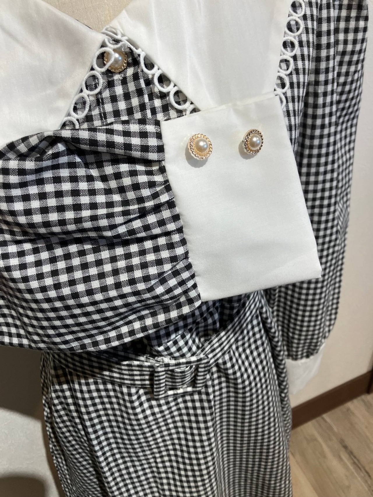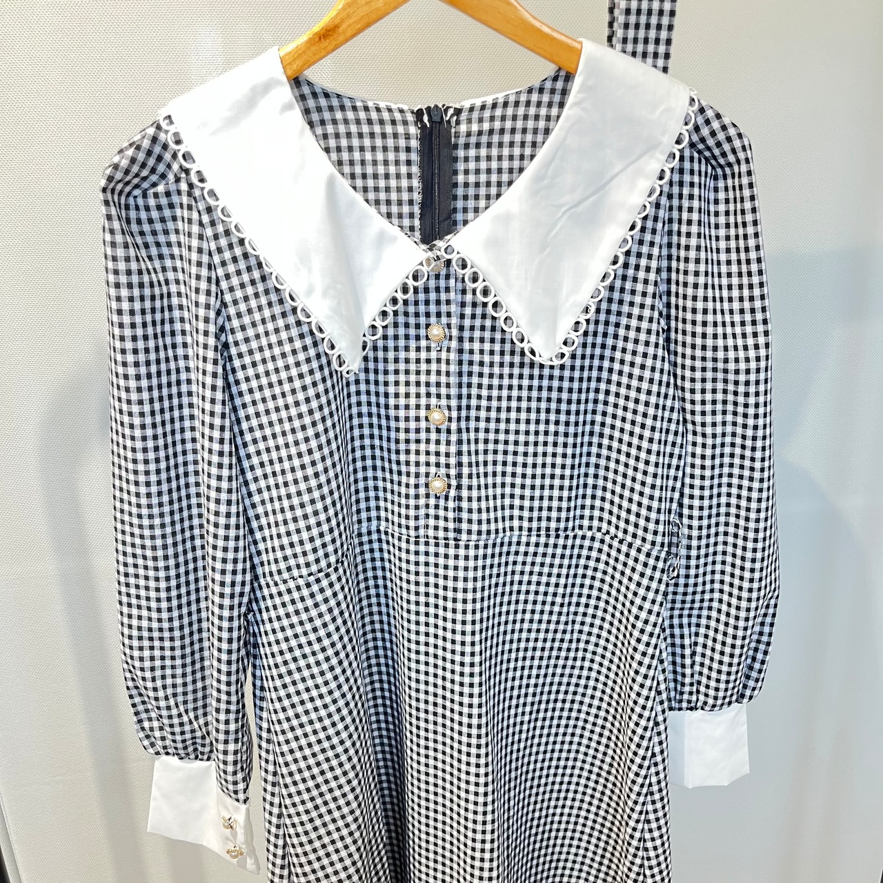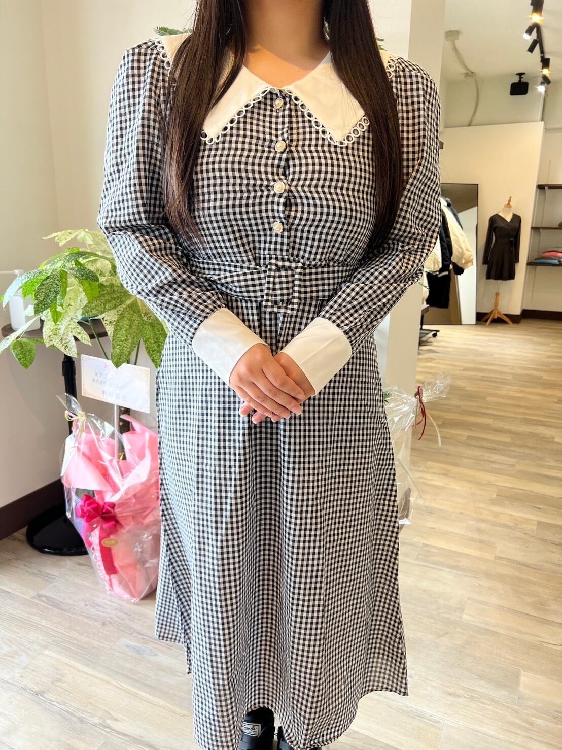レース/格子柄/ワンピース/フレンチガーリー/襟/韓国ガーリー/韓国風/パールボタン/レディース