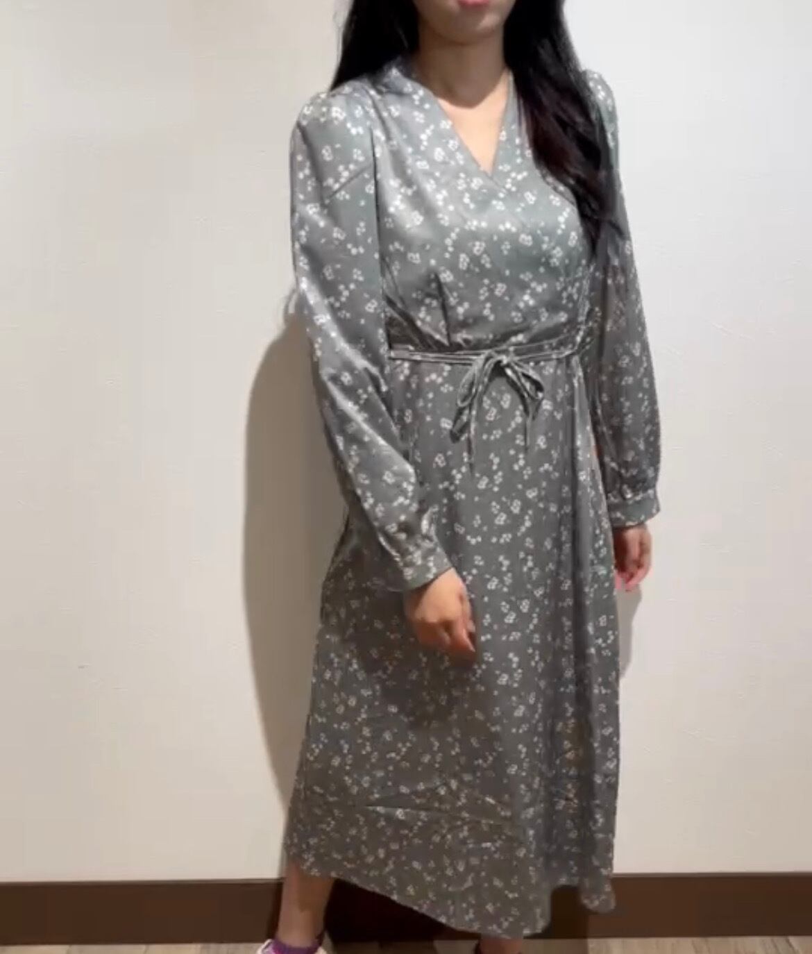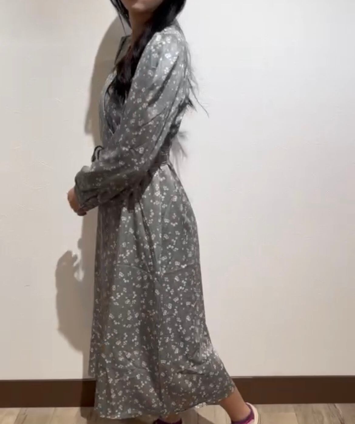 Vネック小花柄フレアワンピース