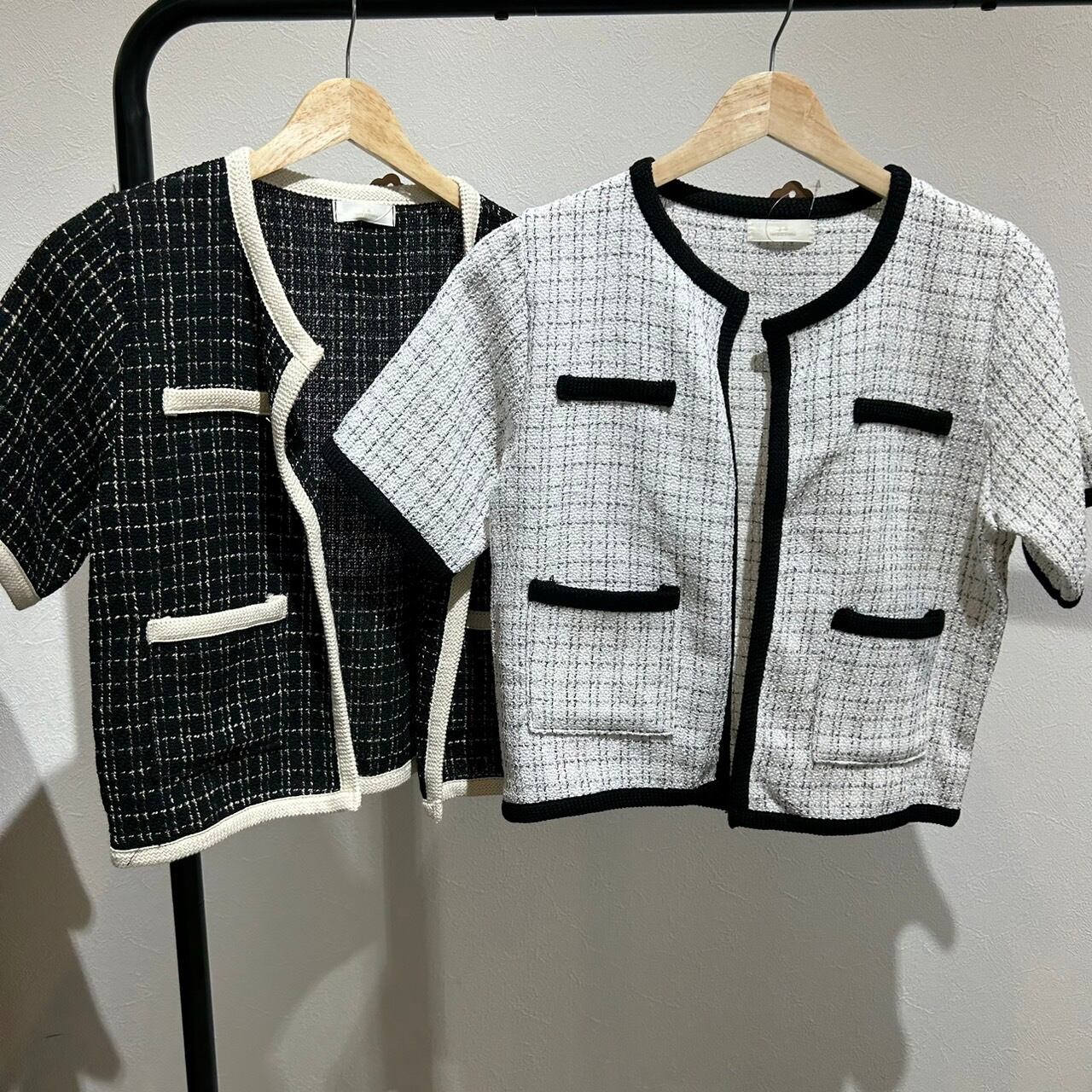 レディース/トップス/カーディガン/ジャケット/バイカラー/ツイード/オフィス/カジュアル/韓国