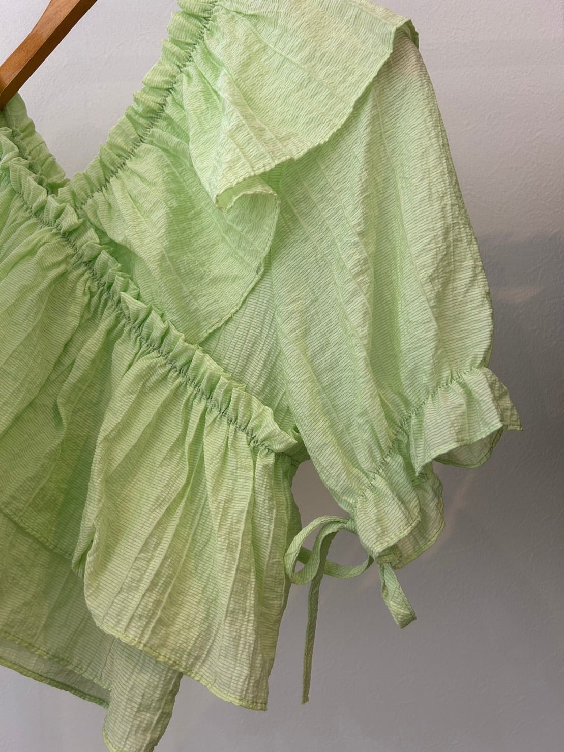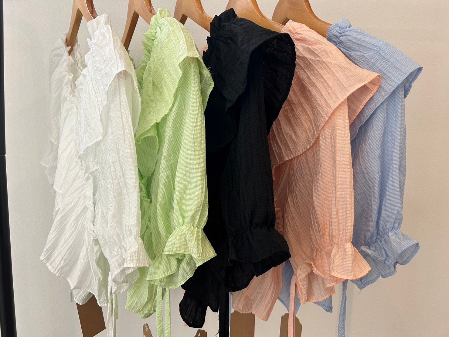 レディース/トップス/ブラウス/クロスフリル/フリルブラウス/ペプラム/Vネック/フリルネック/韓国ファッション