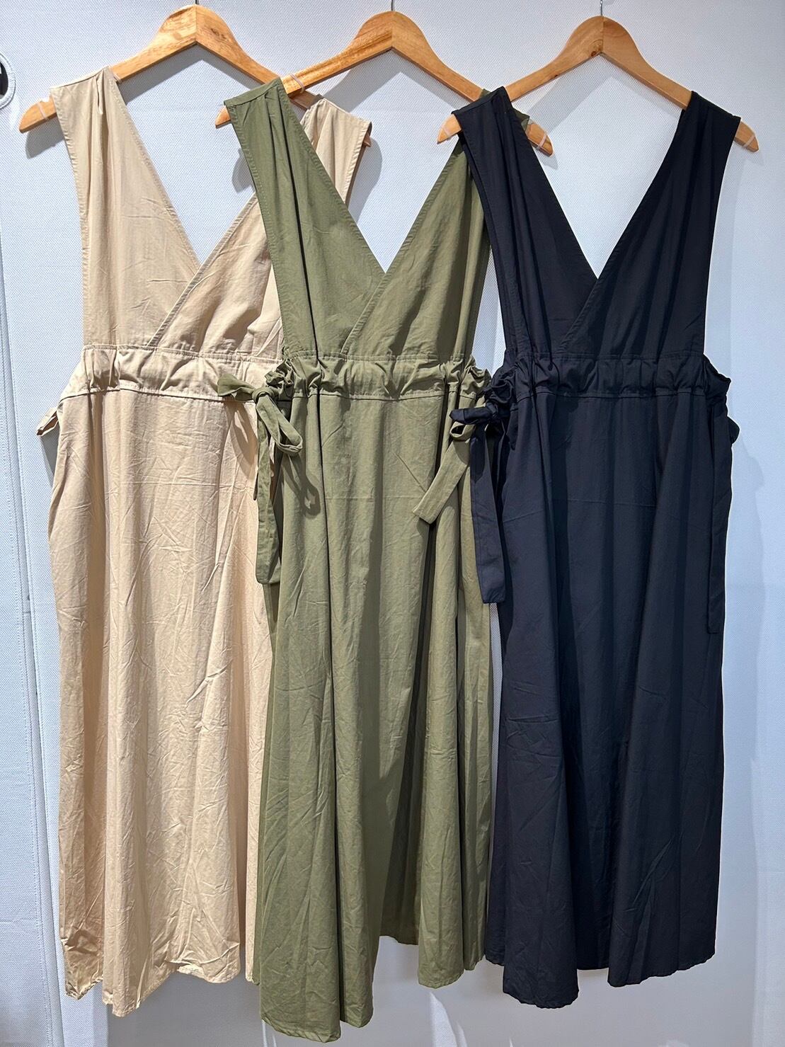 Vネックデザイン綿素材ワンピース