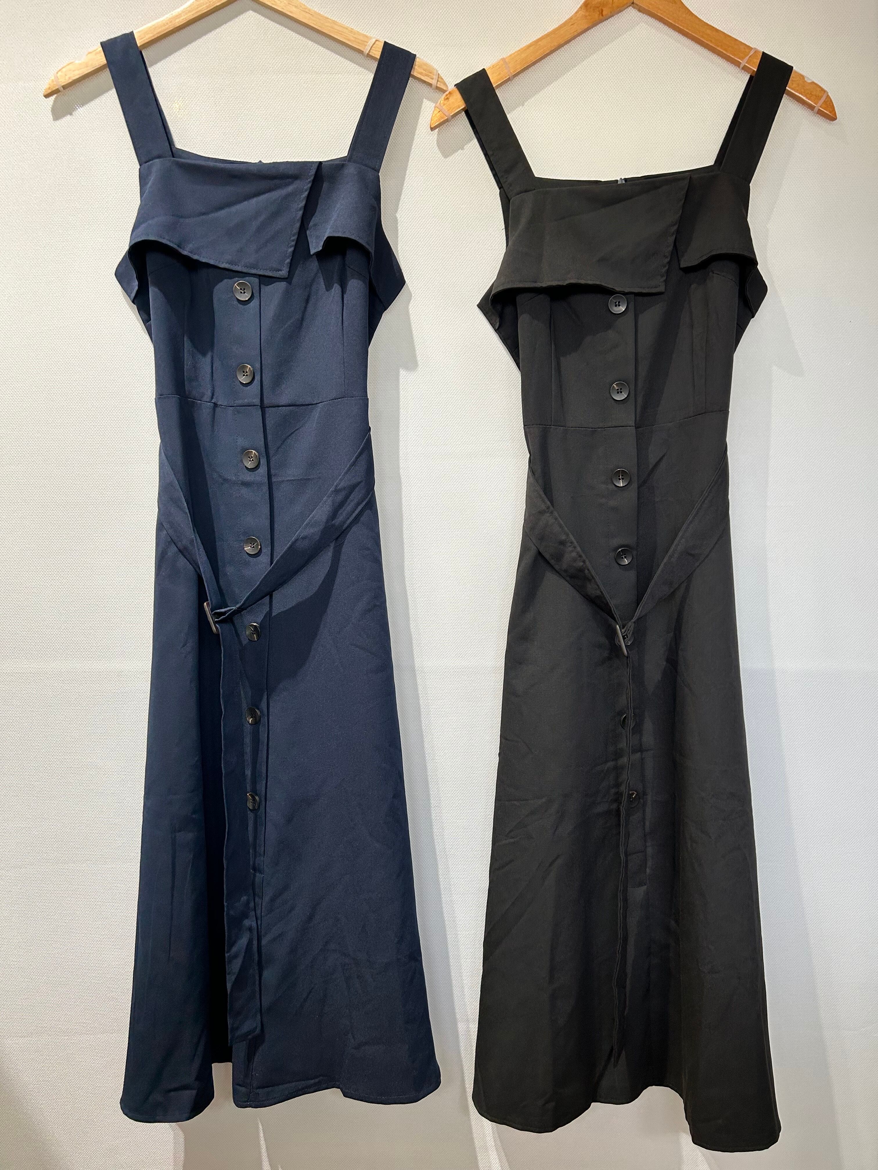 レディース/ワンピース/ロングワンピース/トレンチ風ワンピース/フロントボタン/ビスチェワンピース/韓国ファッション