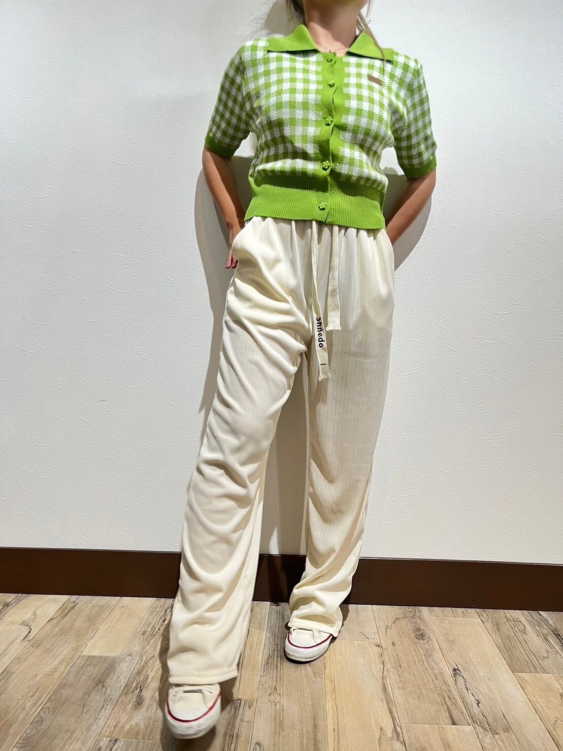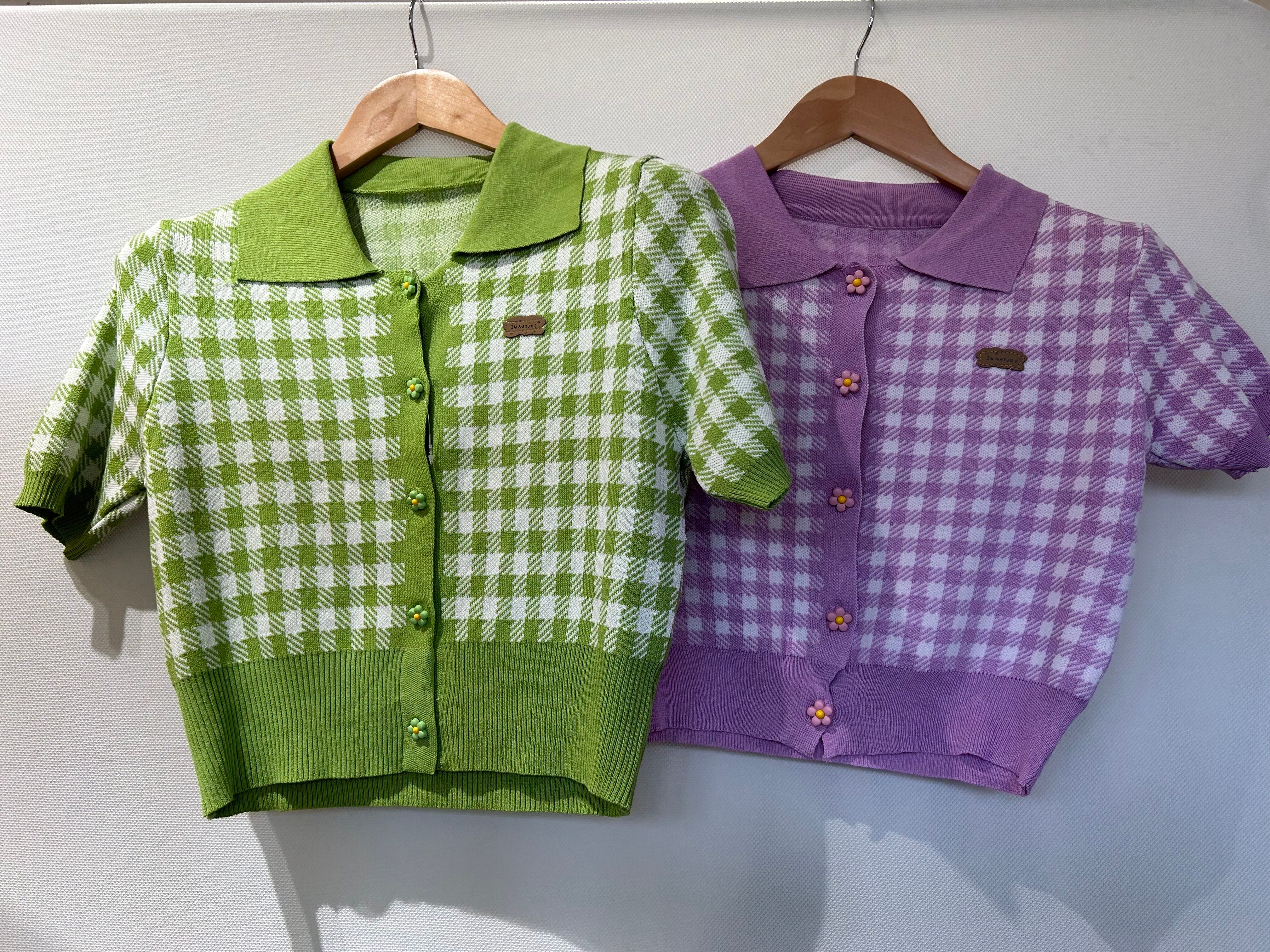 レディース/トップス/カーディガン/半袖/ボレロ/ショート丈/チェック柄/サマーニット/前開き/花柄ボタン/韓国ファッション