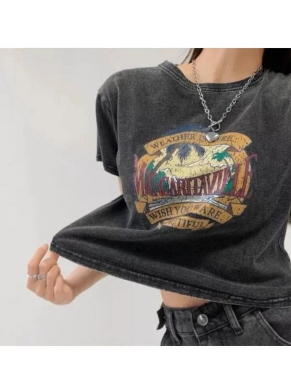 レディース/トップス/半袖/Tシャツ/プリントTシャツ/ヴィンテージ/アメカジ/クロップド丈/ラウンドネック/