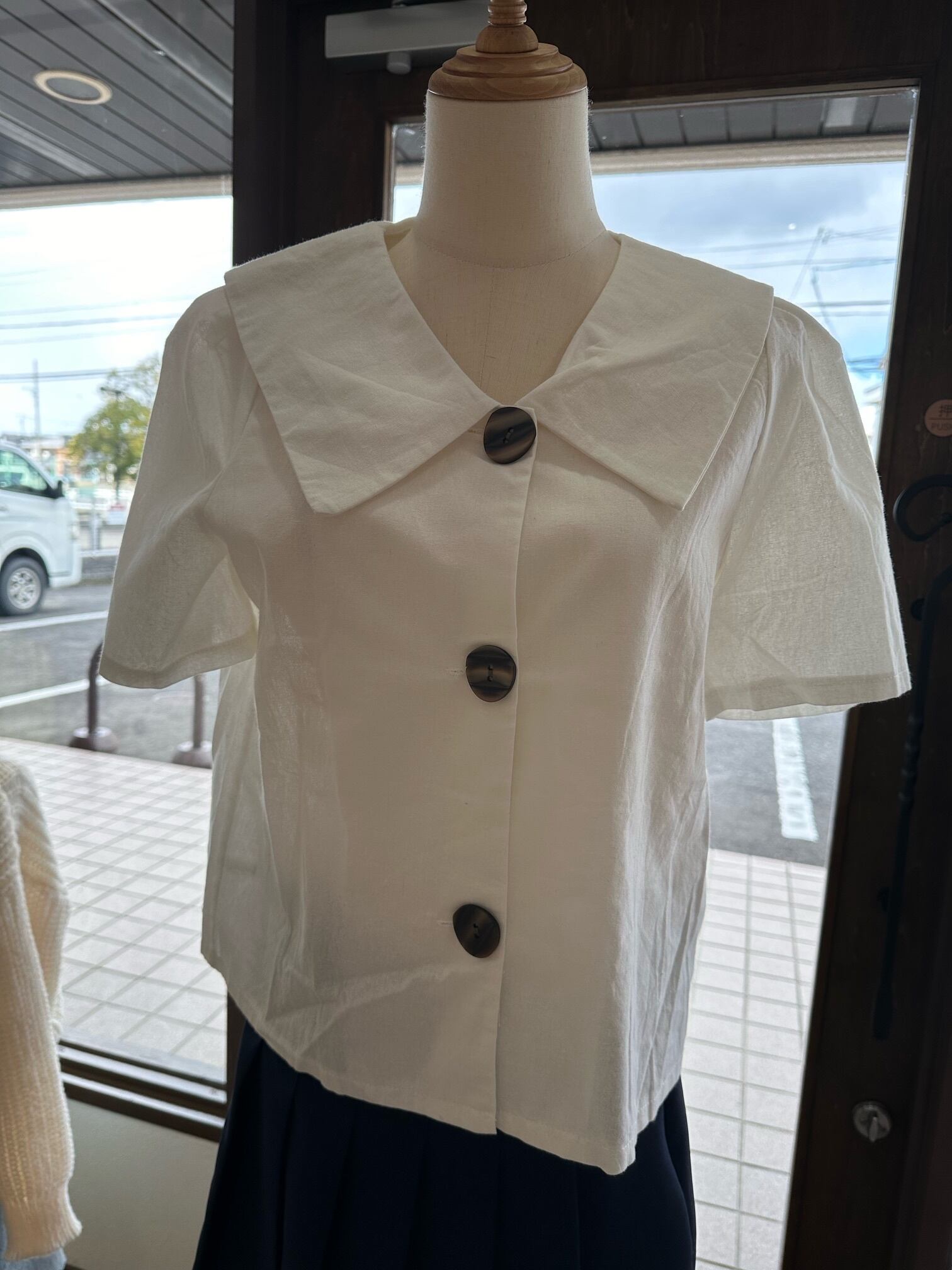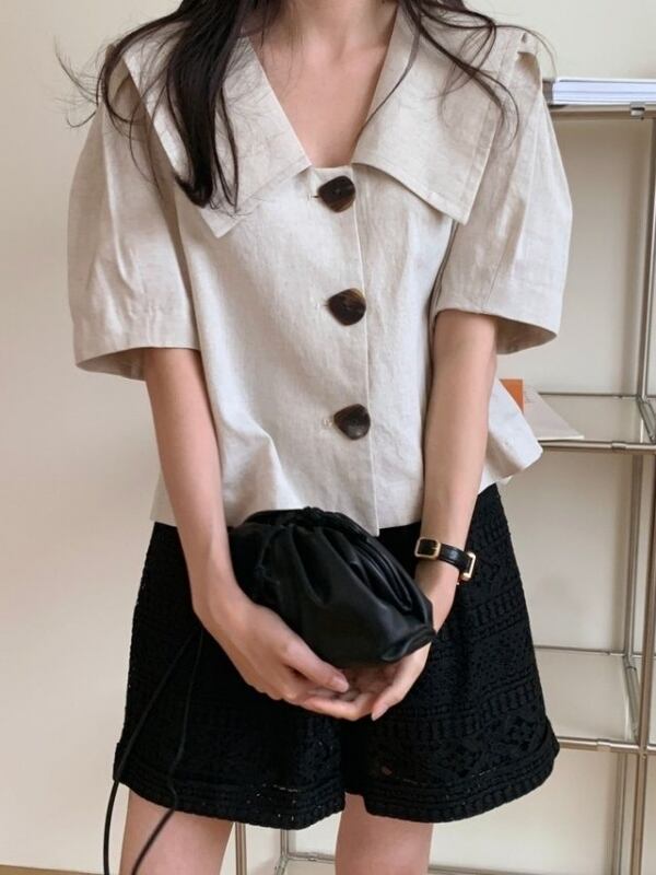 レディース/ショートシャツ/レトロシャツ/レトロ/コットンリネン/セーラー襟/韓国