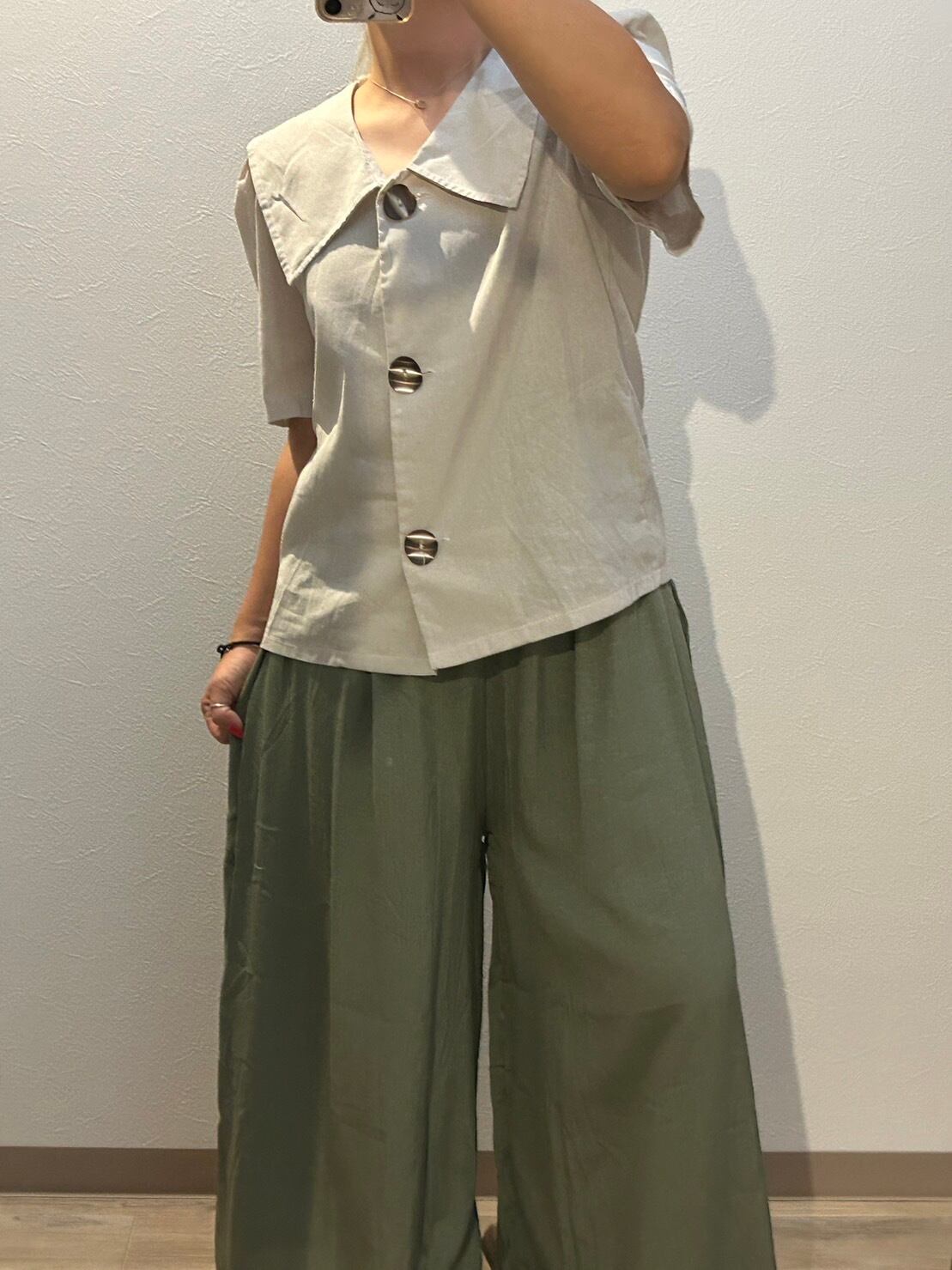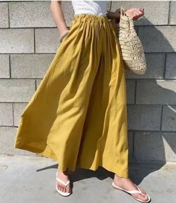 レディース/パンツ/ボトム/ガウチョパンツ/ワイドパンツ/リネンパンツ/ウエストゴム/韓国ファッション