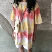 レディース/ユニセックス/トップス/半袖/タイダイ柄Tシャツ/タイダイ柄/カラフル/オーバーサイズ/クルーネック/韓国