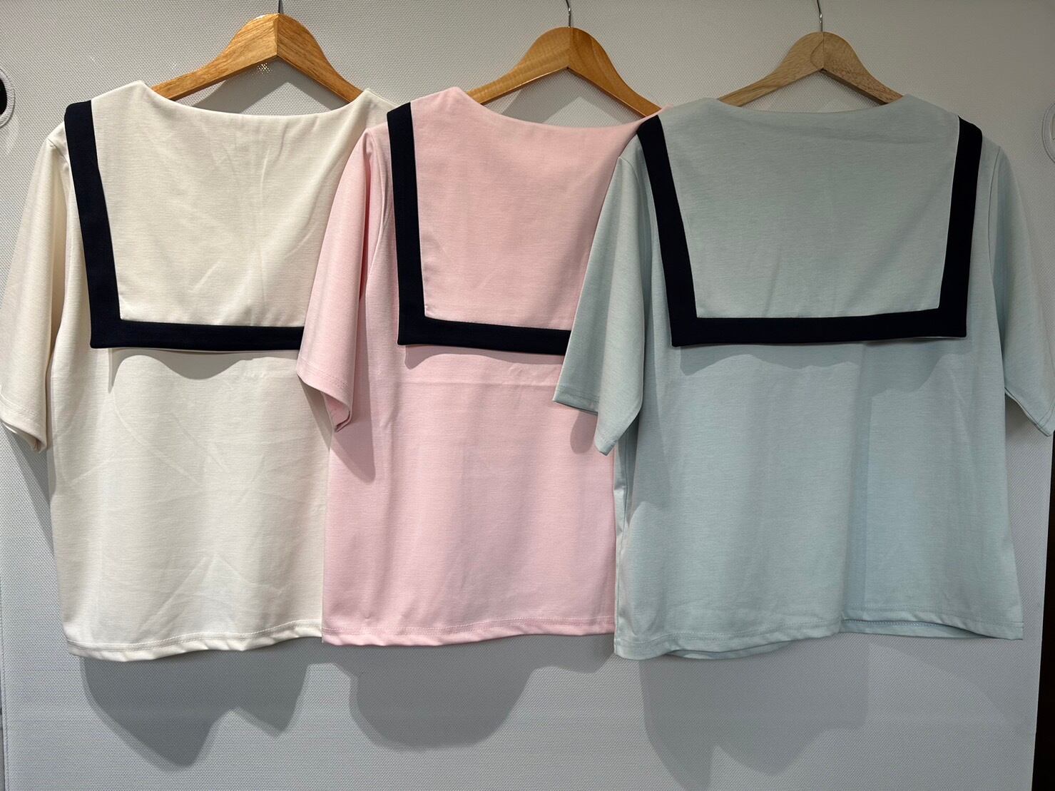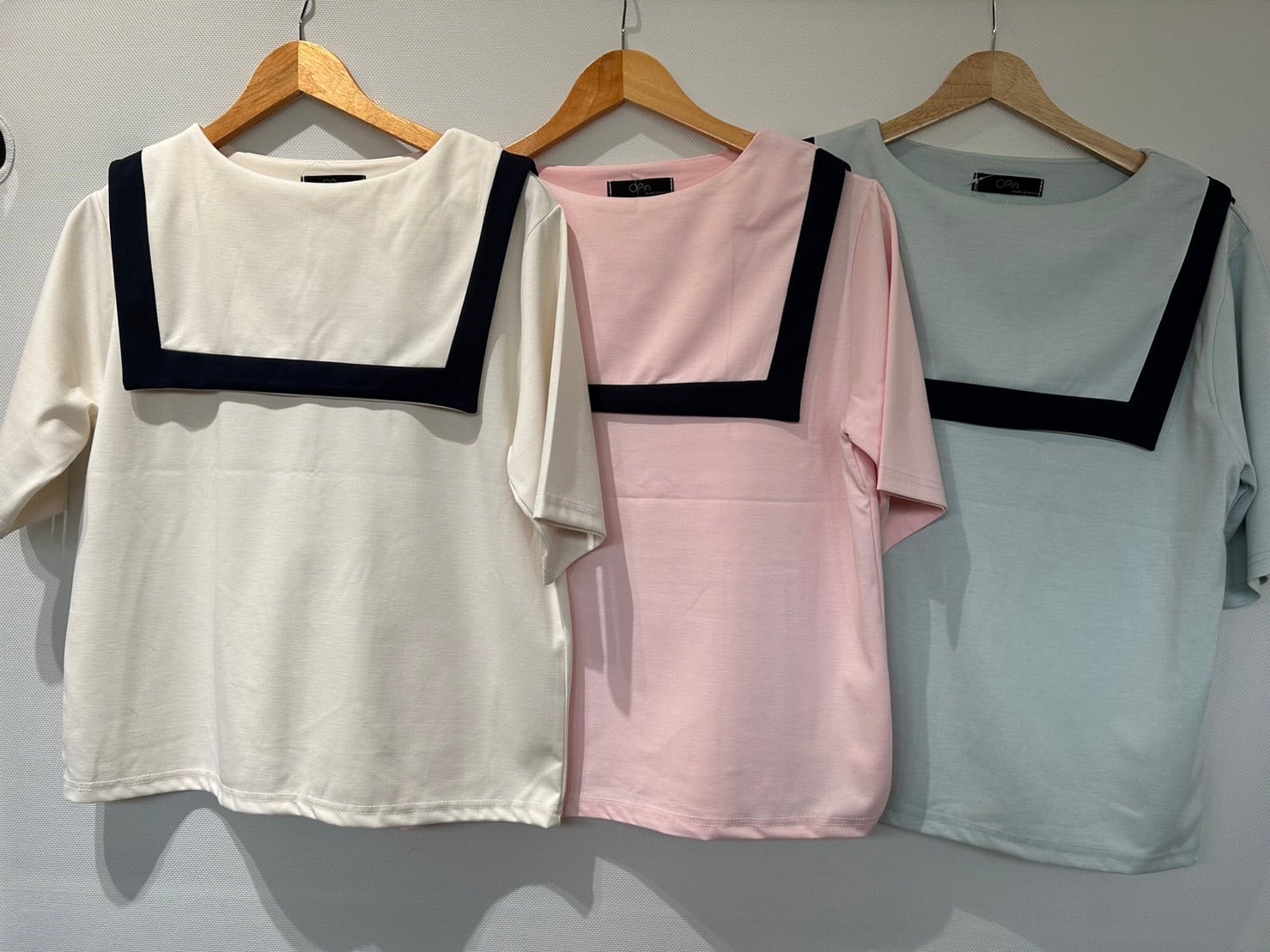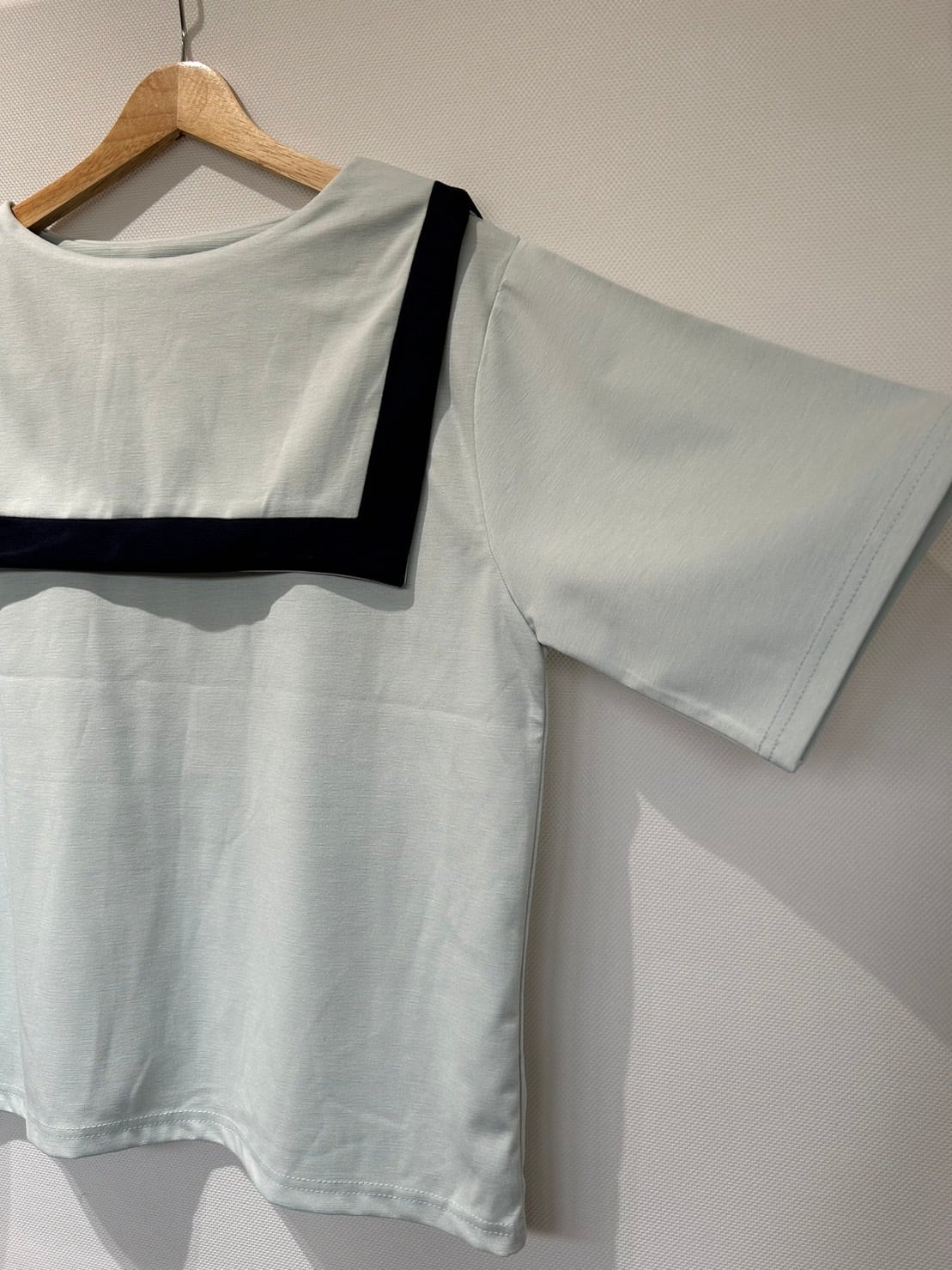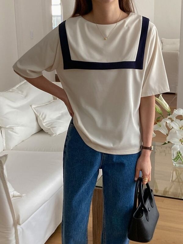 レディース/トップス/半袖/セーラー襟/デザインカラー/バイカラー/プルオーバー/シンプル/カジュアル/韓国ファッション