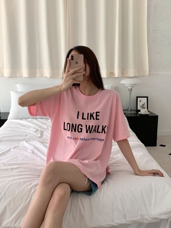 レディース/トップス/半袖/ロゴプリント/サイドスリットTシャツ/クルーネック/カジュアル/シンプル/韓国ファッション