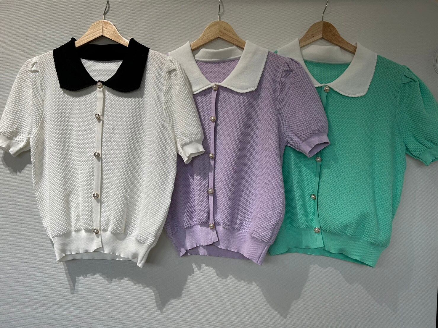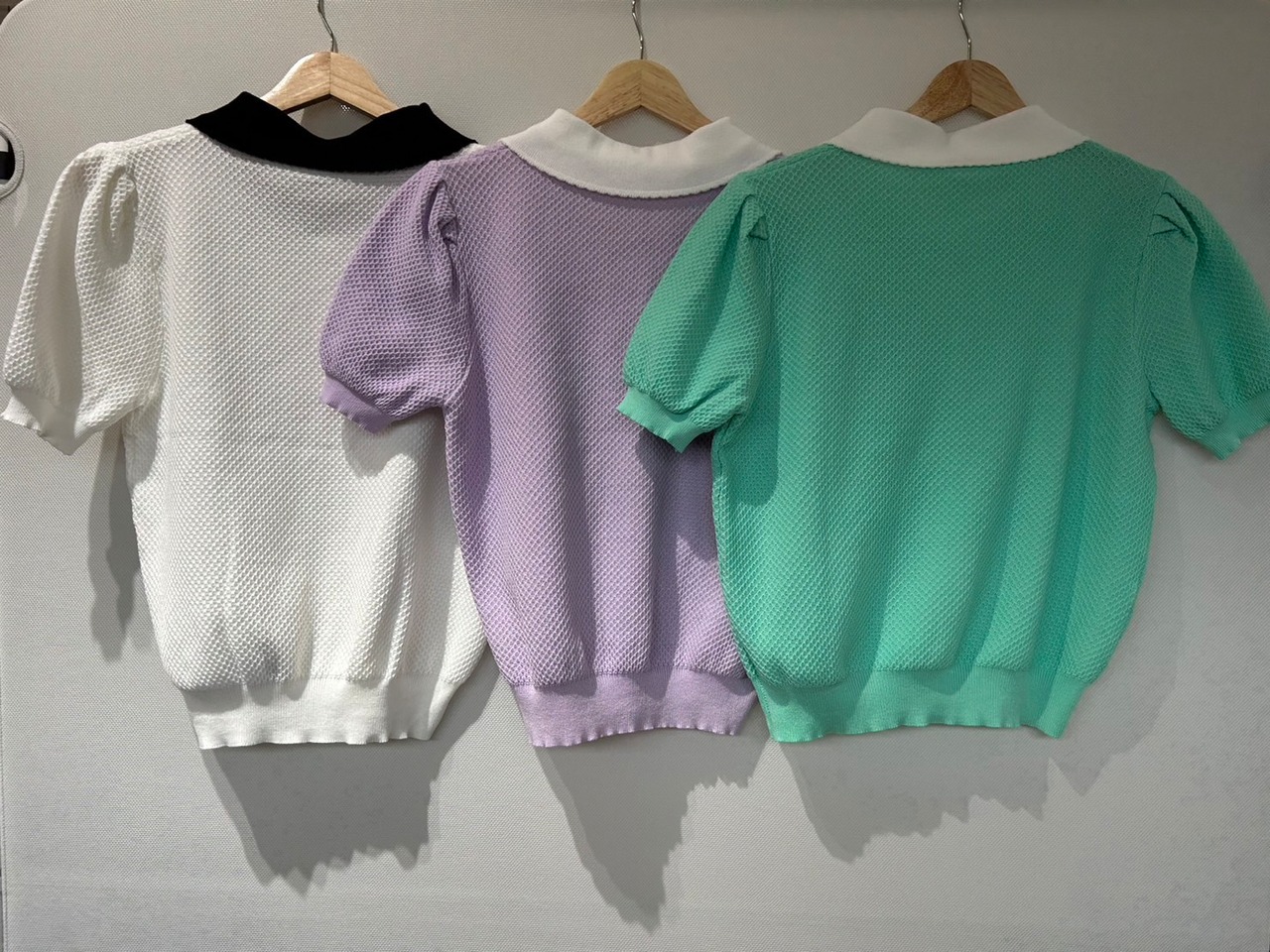 レディース/トップス/半袖/サーマルシャツ/ワッフル/サマーニット/バイカラー/前開き/韓国ファッション