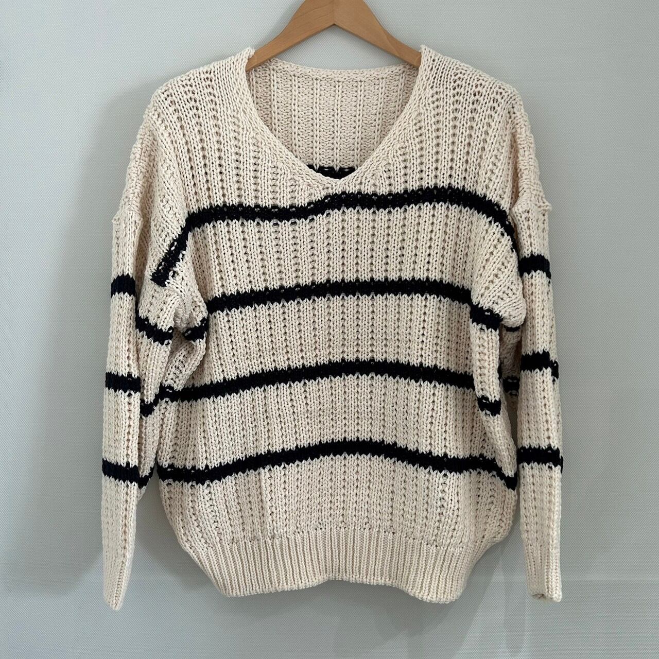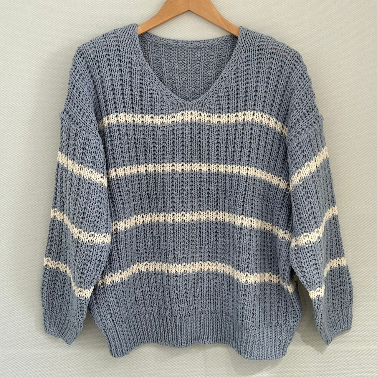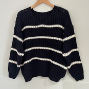 レディース/トップス/長袖/ニット/セーター/Vネック/ボーダー/ルーズニット/秋服/韓国ファッション